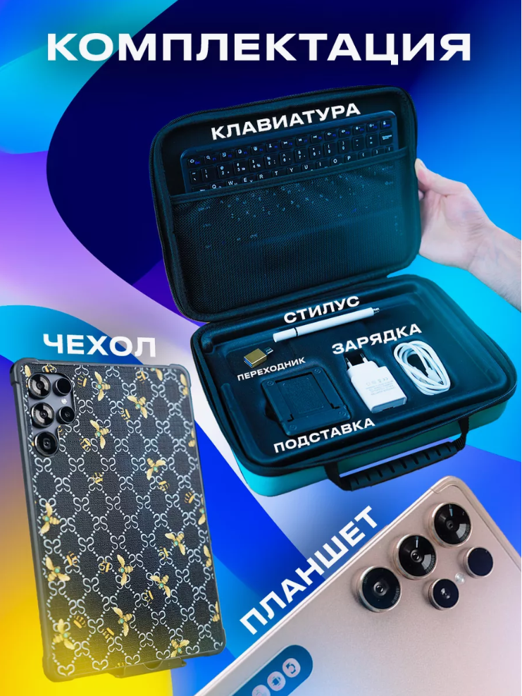 Планшет Rocket Зеленый 6+128GB сим-карта 4G LTE " В комплекте мышь, русская клавиатура и беспроводные наушники.