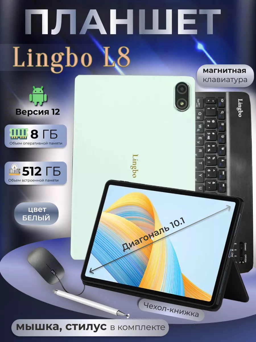 Планшет Lingbo L23 8/512 GB 10.1 дюймов Android 12, Цвет Голубой