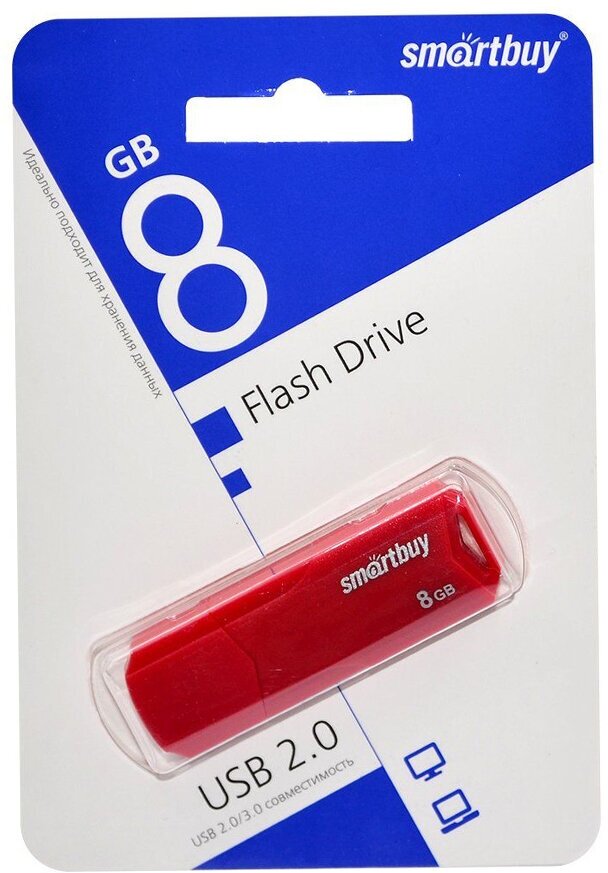 Накопитель USB 2.0 8Гб Smartbuy Clue (SB8GBCLU-R), красный