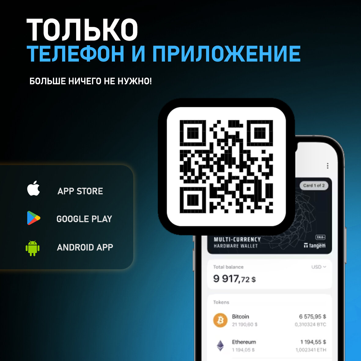 Аппаратный криптокошелек Tangem Wallet 2.0 на 3 карты - холодный кошелек для криптовалют от официального реселлера BIP39