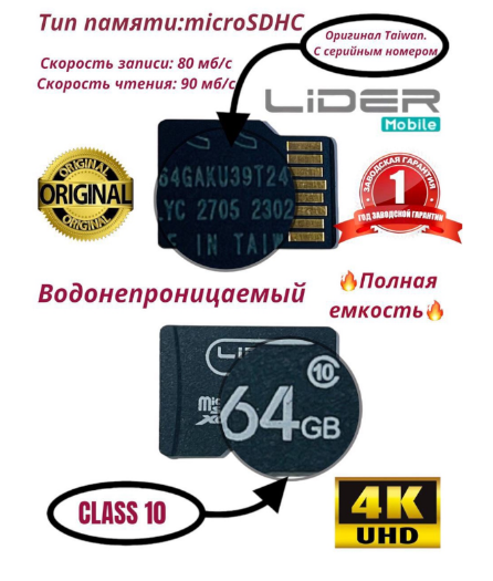 Карта памяти MicroSD 64GB / Водонепроницаемый чип /Высокоскоростной