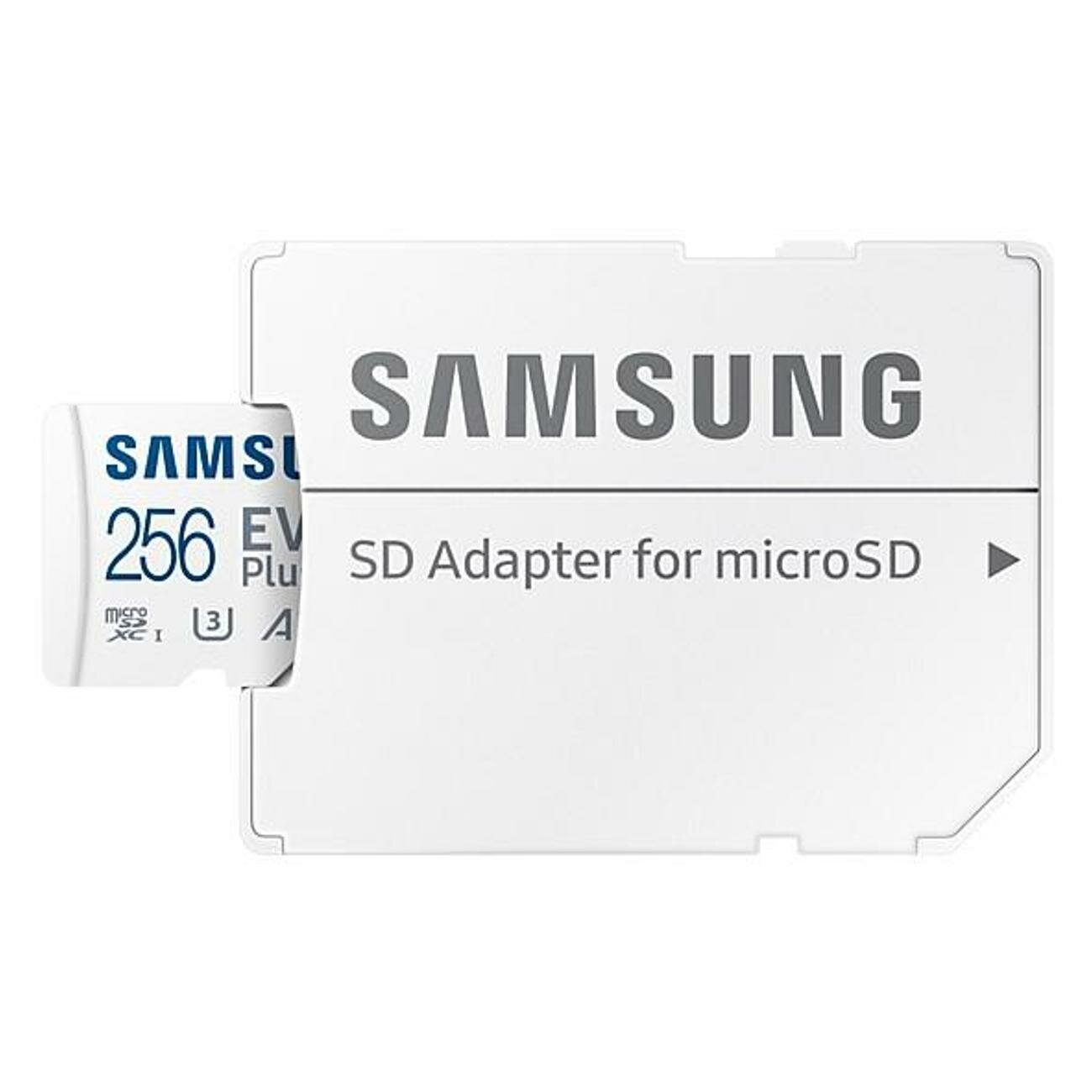 Micro SecureDigital 256GB Samsung EVO Plus Class 10, A2, V30, UHS-I (U3), W 90 МБ/с, R 130 МБ/с, адаптер на SD