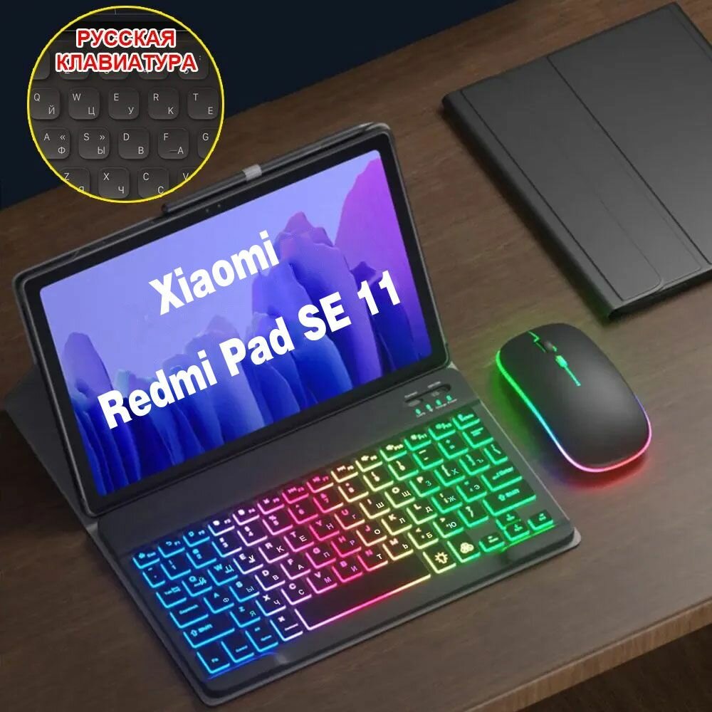 Русская клавиатура + мышь + кожаный чехол, подходит для Xiaomi Redmi Pad SE 11" 2023 интересное: