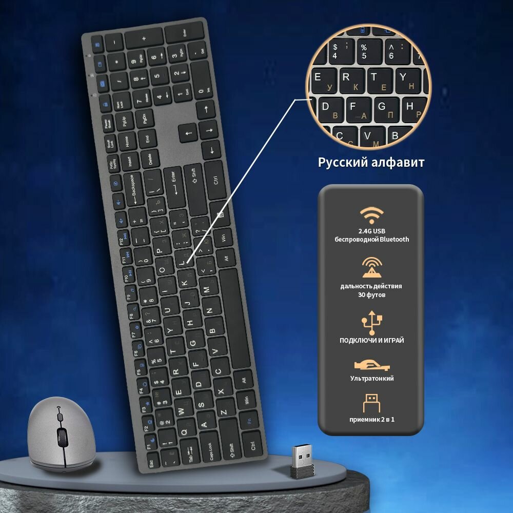 Беспроводная мышь + клавиатура в комплекте, русская раскладка интересное: