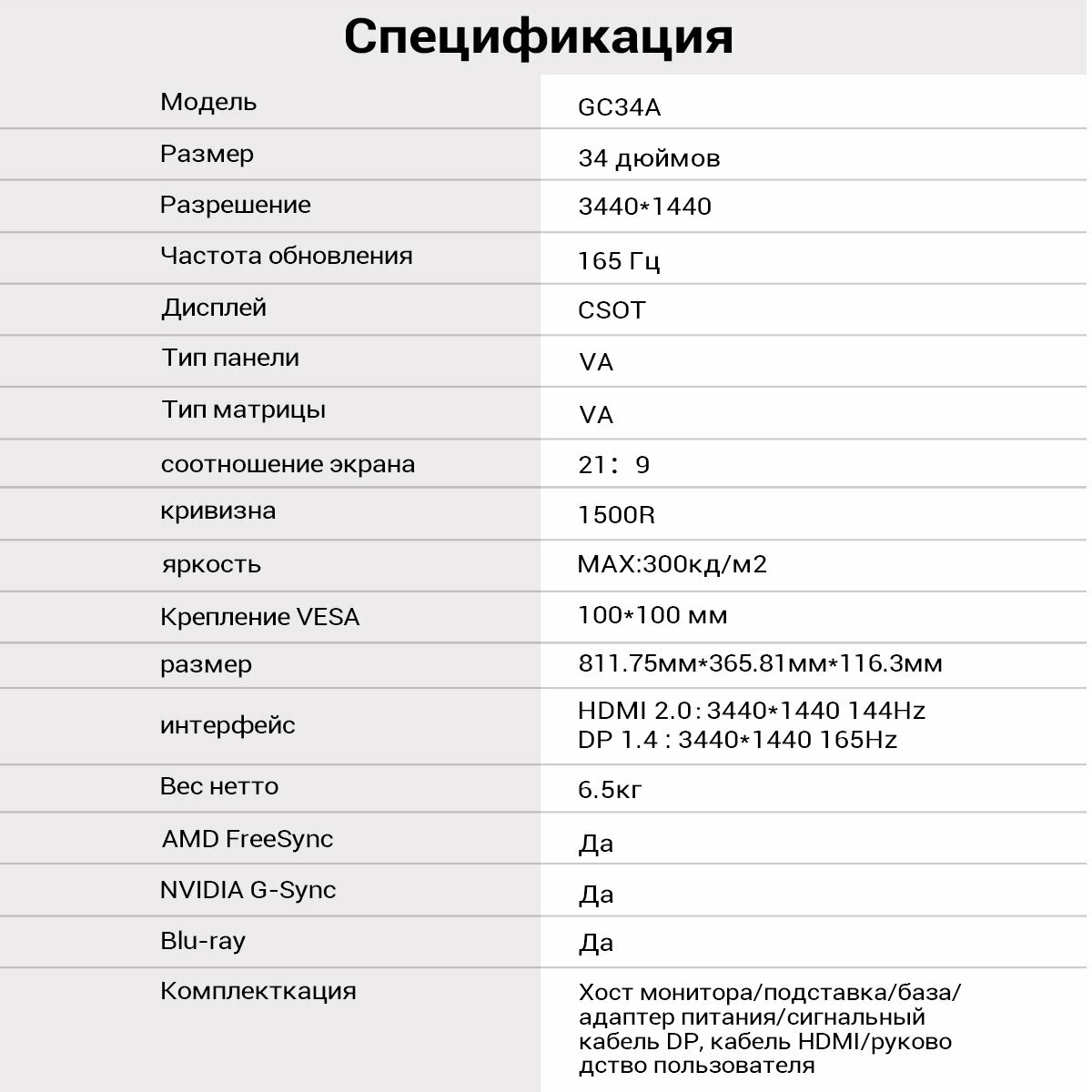 | Макс. разрешение | 3440x1440 |