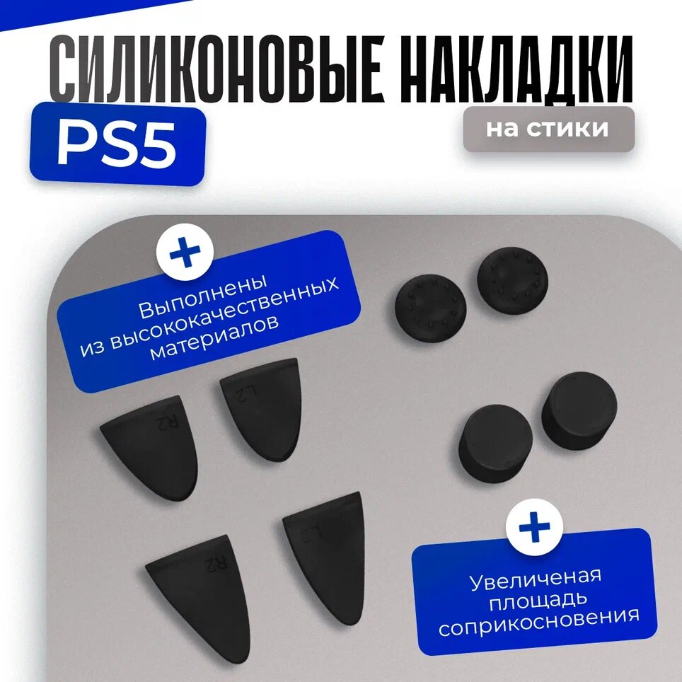 Набор силиконовых накладок Metrobas Trigger Kit 8 в 1 для геймпада DualSense на Playstation PS5 (TP5-0513), черный