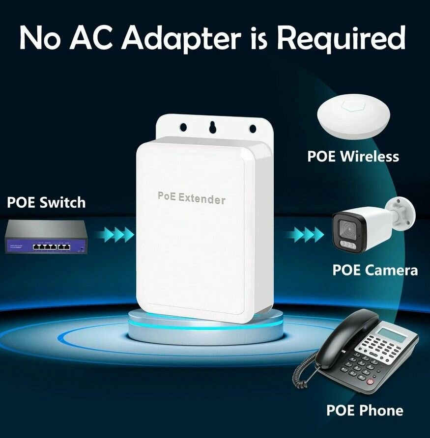 Удлинитель POE, коммутатор Ethernet 100 мбит, влагозащищённый разветвитель 3 портовый