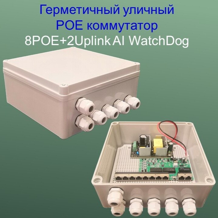 Уличный POE(свитч) 8POE+2Uplink 1000 Мбит/с, WatchDog, Бюджет 120 Ватт, switch IC REALTEK