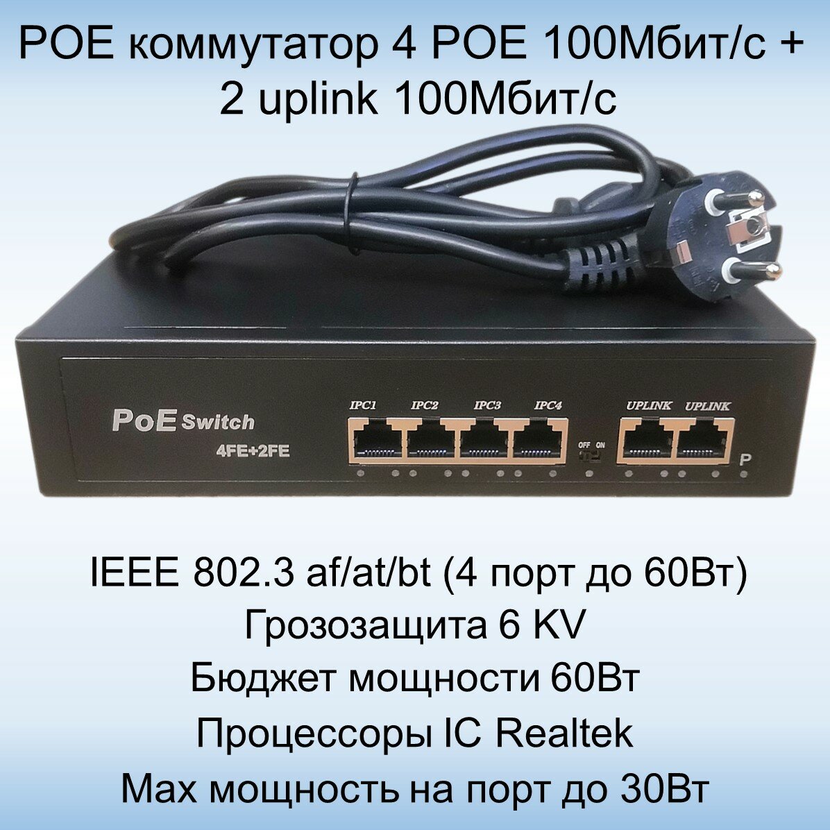 Коммутатор POE свич с 4POE +2Uplinк 100 Мбит/с портов,грозозащита 6KV, до 250 метров,поддержка IEEE803.2bt- 4 порт интересное: