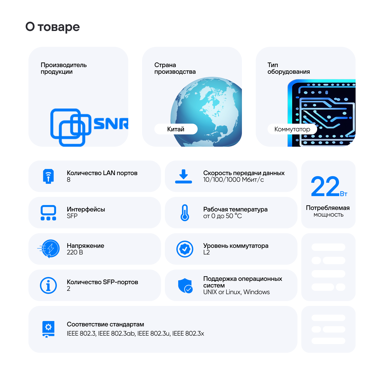 Коммутатор SNR S2982g-8t, управляемый, кол-во портов: 8x1 Гбит/с, кол-во SFP/uplink: SFP 2x1 Гбит/с .