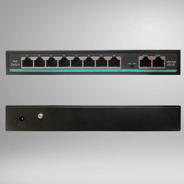 Купить Коммутатор YDA POE(свитч) 8POE+2Uplink,100 Мбит/с, WatchDog+VLAN, Бюджет 120 Ватт,наружный БП, switch IC REALTEK