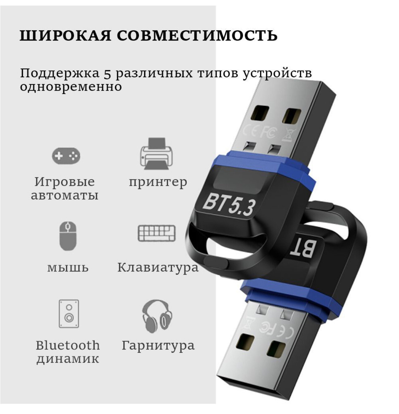 Адаптер Bluetooth 5.3/ Беспроводной USB Bluetooth приемник 5.3/ передатчик для ПК интересное: