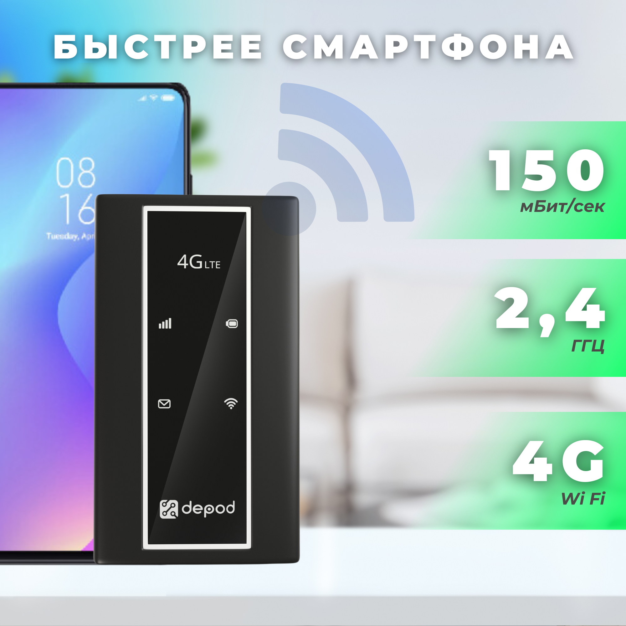 Wi-Fi роутер с сим-картой, 4g модем, Depod Rocket, для любых сим-карт для любых тарифов