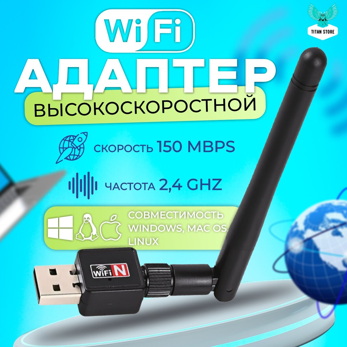 WiFi адаптер, с антенной, 150Мбит/c для компьютера/ усилитель WiFi сигнала, для быстрого и надежного подключения интересное: