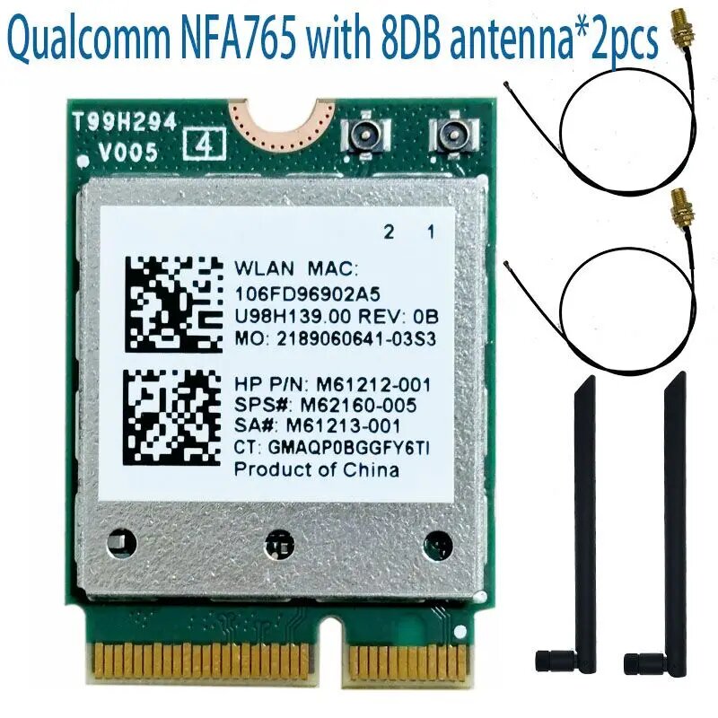 QCNFA765 WIFI 6E 802.11ax 2,4G/5G/6G WIFI 2400M BT5.2 для ноутбука NFA765 WIFI6 NGFFF карта huananzhi x99-f8 SPS: M62160-005, QCNFA765 2 8DB sma интересное: