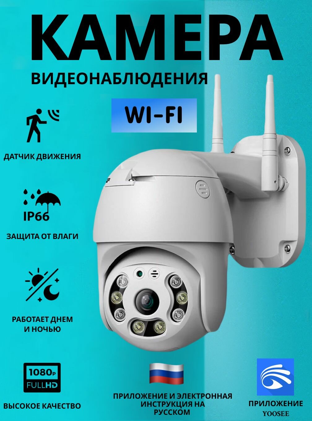 Камера видеонаблюдения уличная Wi-Fi 3MP Yoosee датчик движения ночной режим интересное: