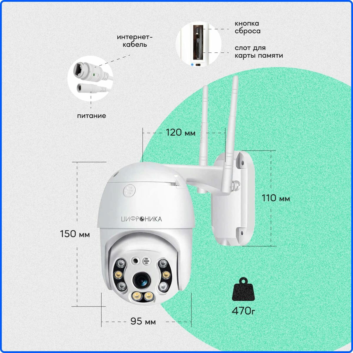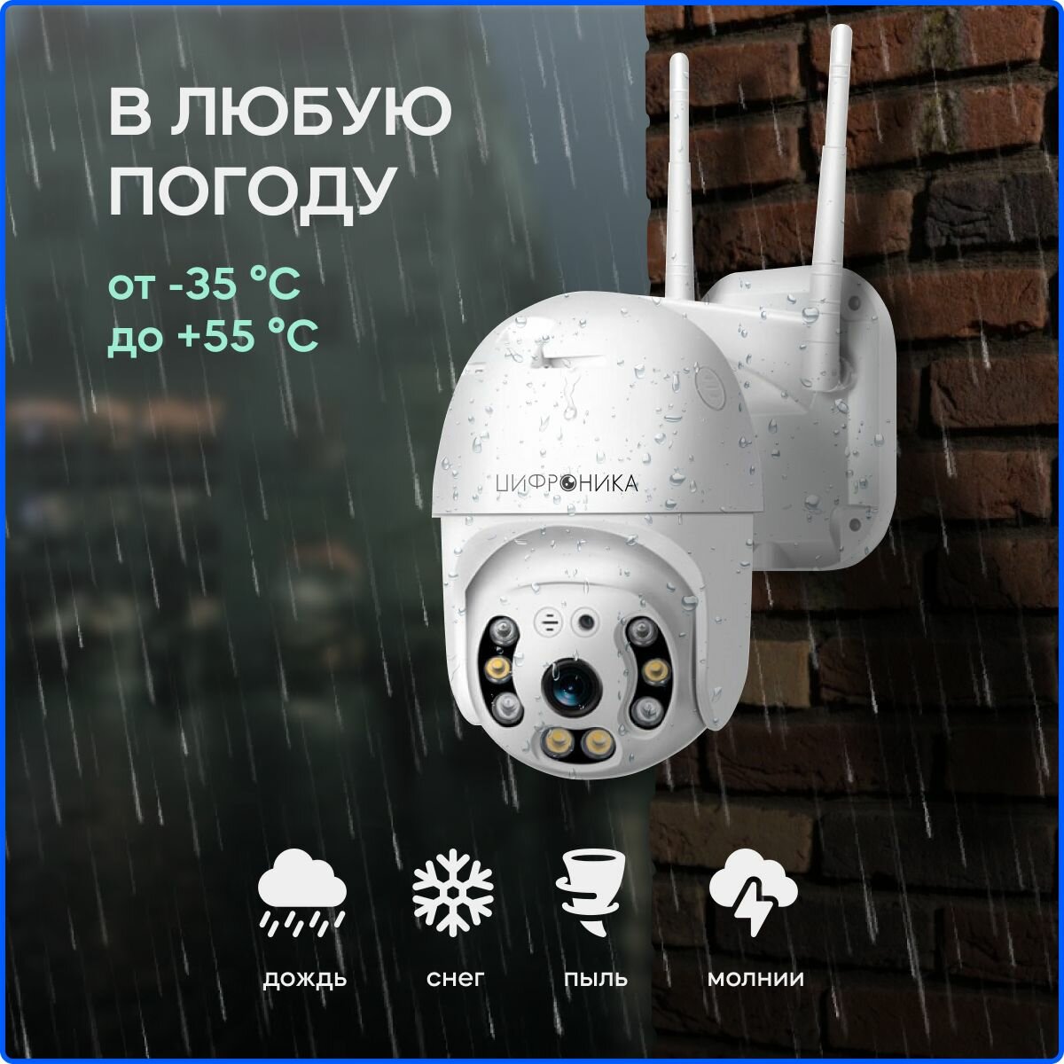 Видеокамера для видеонаблюдения с WI-FI LAN PTZ IP двойная Цифроника WC5-double уличная 1920х1080px 2Mp