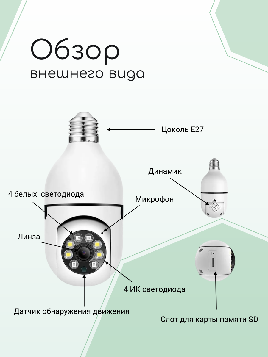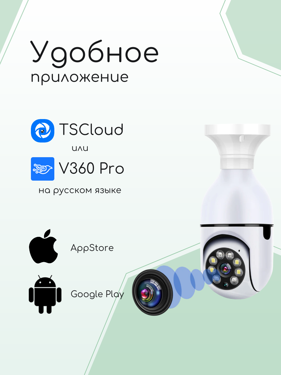 IP-Камера ABC видеонаблюдения, видеоняня Wi-Fi Smart camera E27 беспроводная 2мп (TS-H10) интересное: