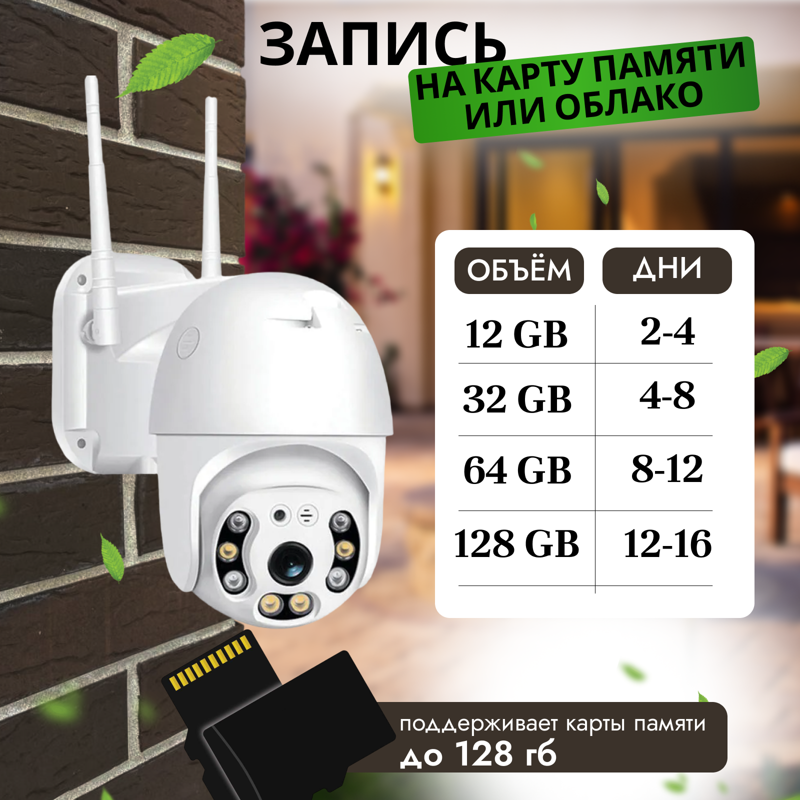 | Функции и особенности | ИК-подсветка / ИК-фильтр / адаптер питания в комплекте / встроенный динамик / встроенный микрофон / ночной режим / слот для карт памяти |