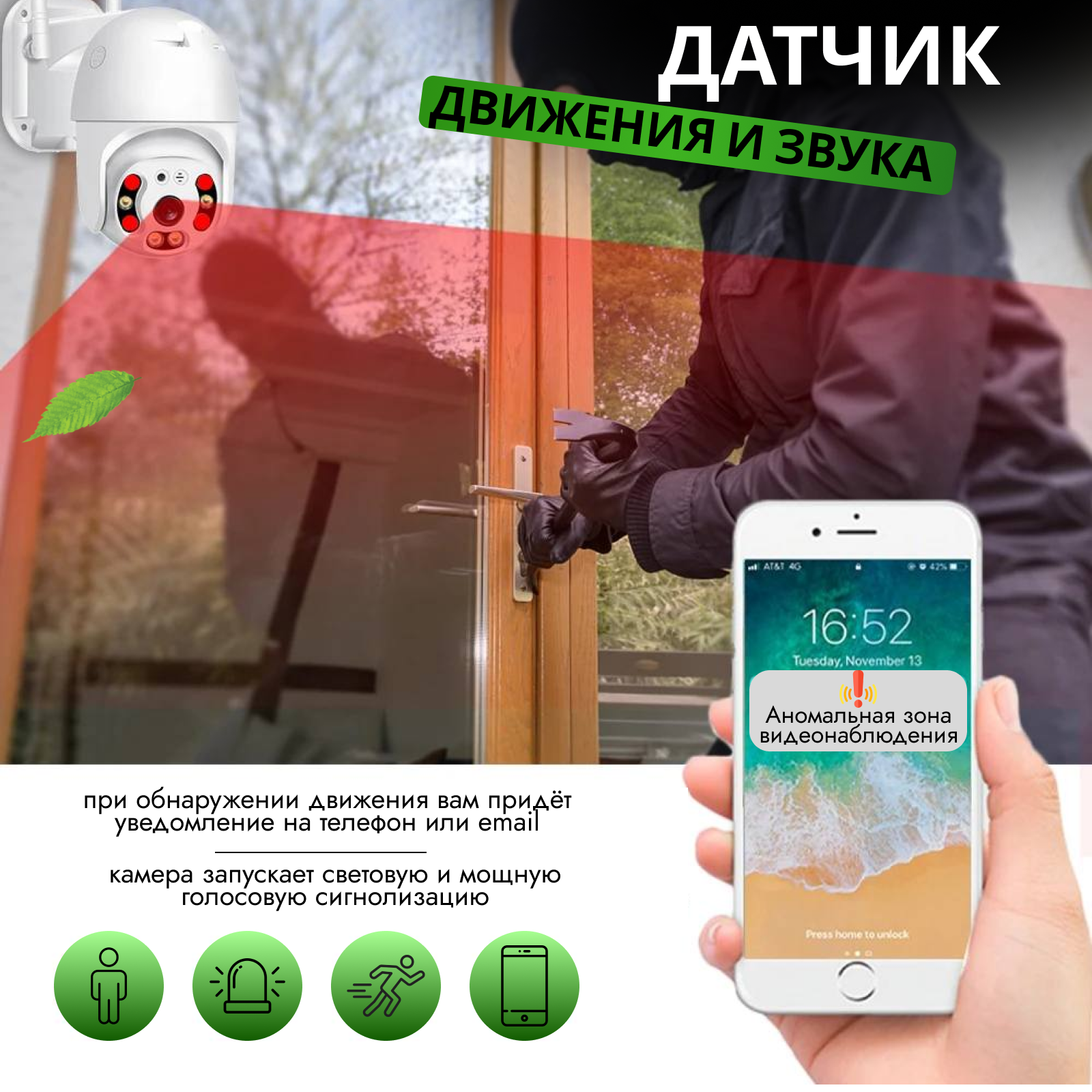 Камера видеонаблюдения wifi уличная, цветная ночная съемка, с датчиком движения, поворотная интересное:
