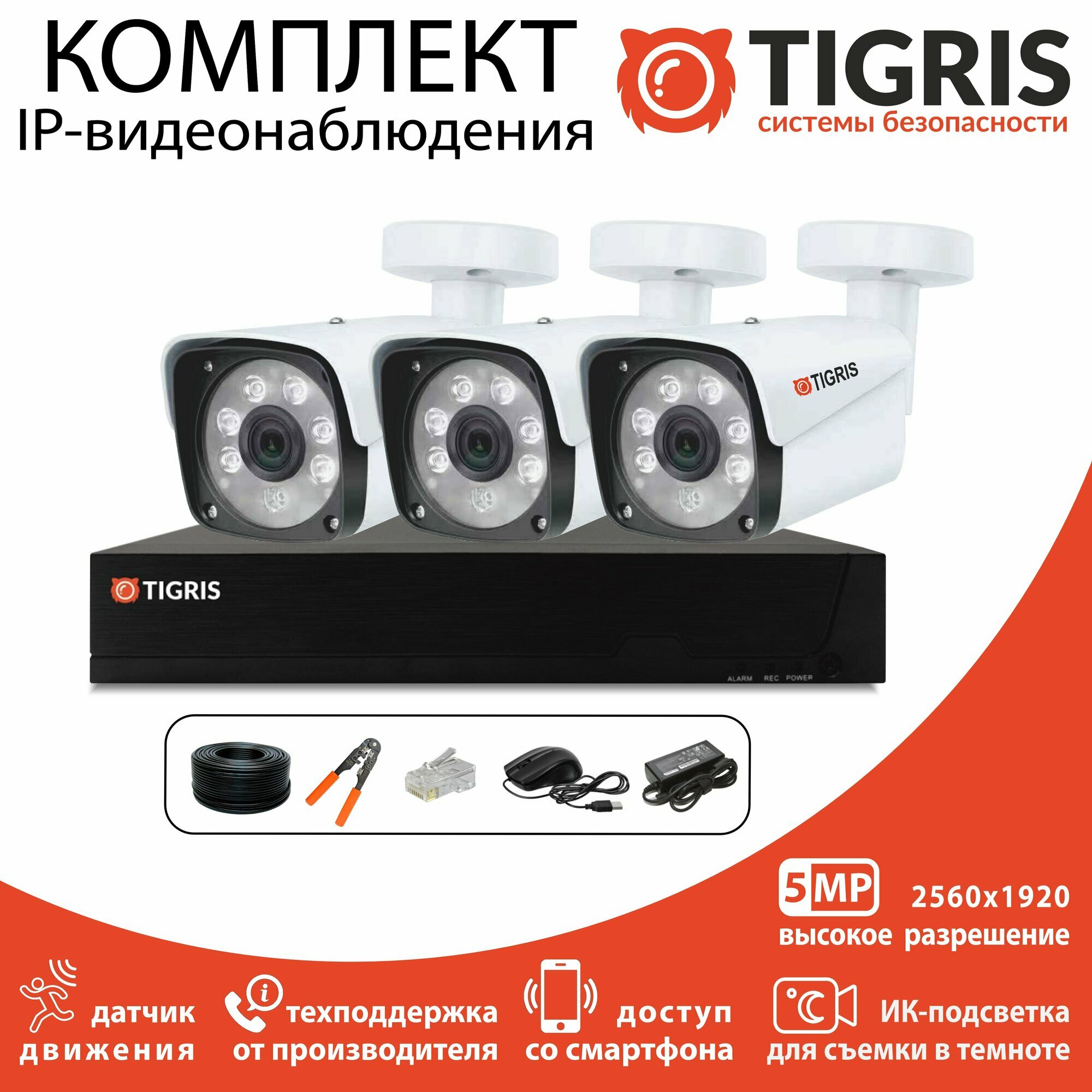 Купить Готовый комплект IP-видеонаблюдения 5 мегапикселей на 3 уличные камеры