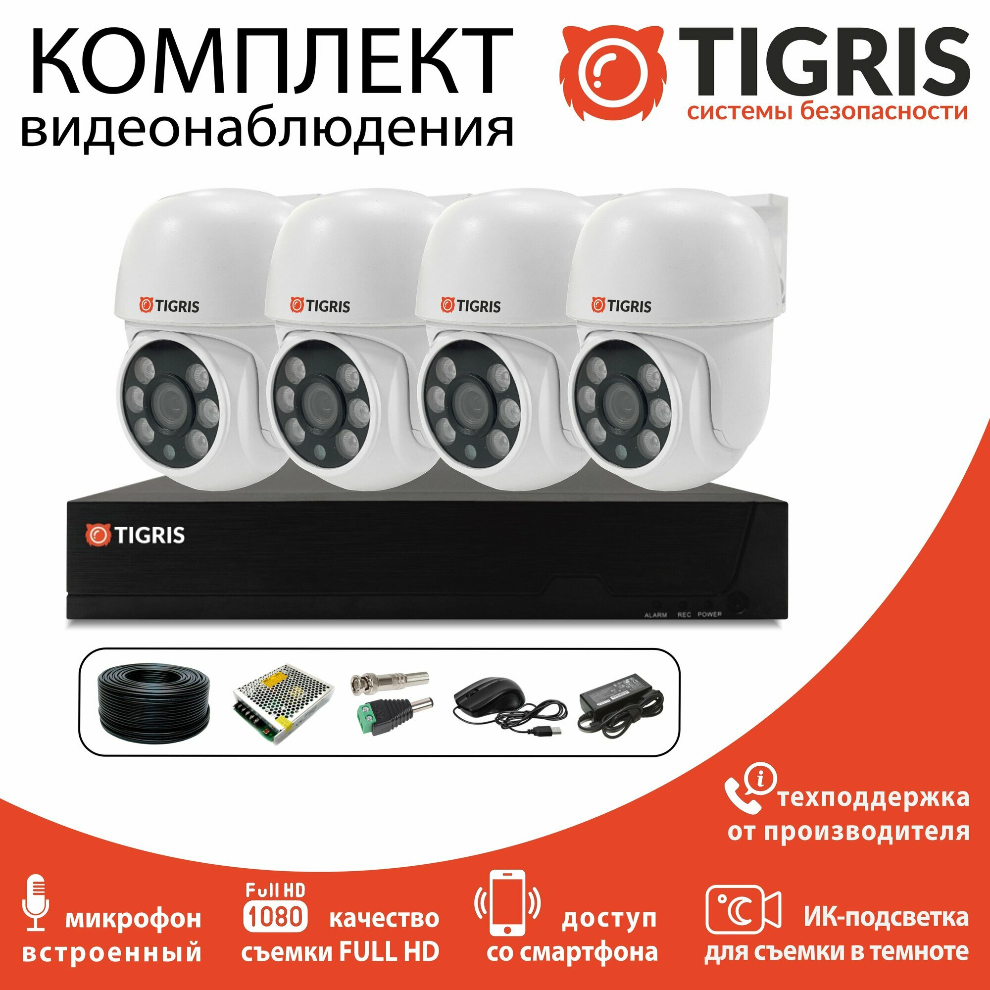 Купить Готовый комплект видеонаблюдения FULL HD на 4 уличные поворотные камеры с микрофоном