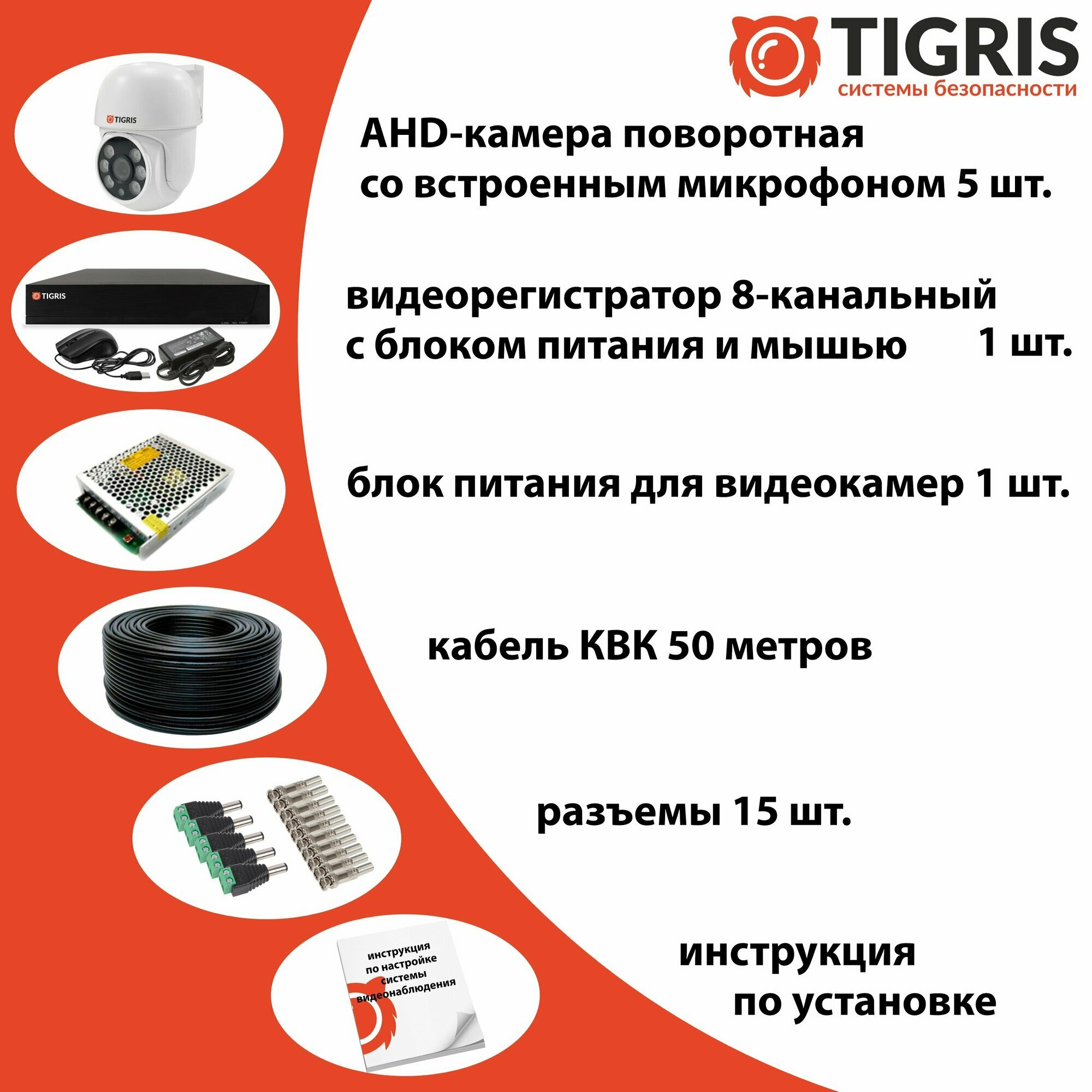 Купить Готовый комплект видеонаблюдения FULL HD на 5 уличных поворотных камер с микрофоном