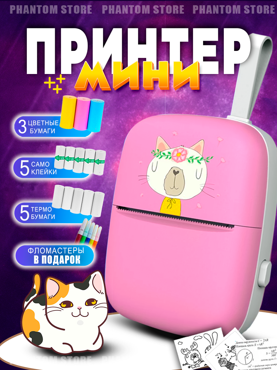 Мини принтер детский для фото портативный для детей, розовый интересное: