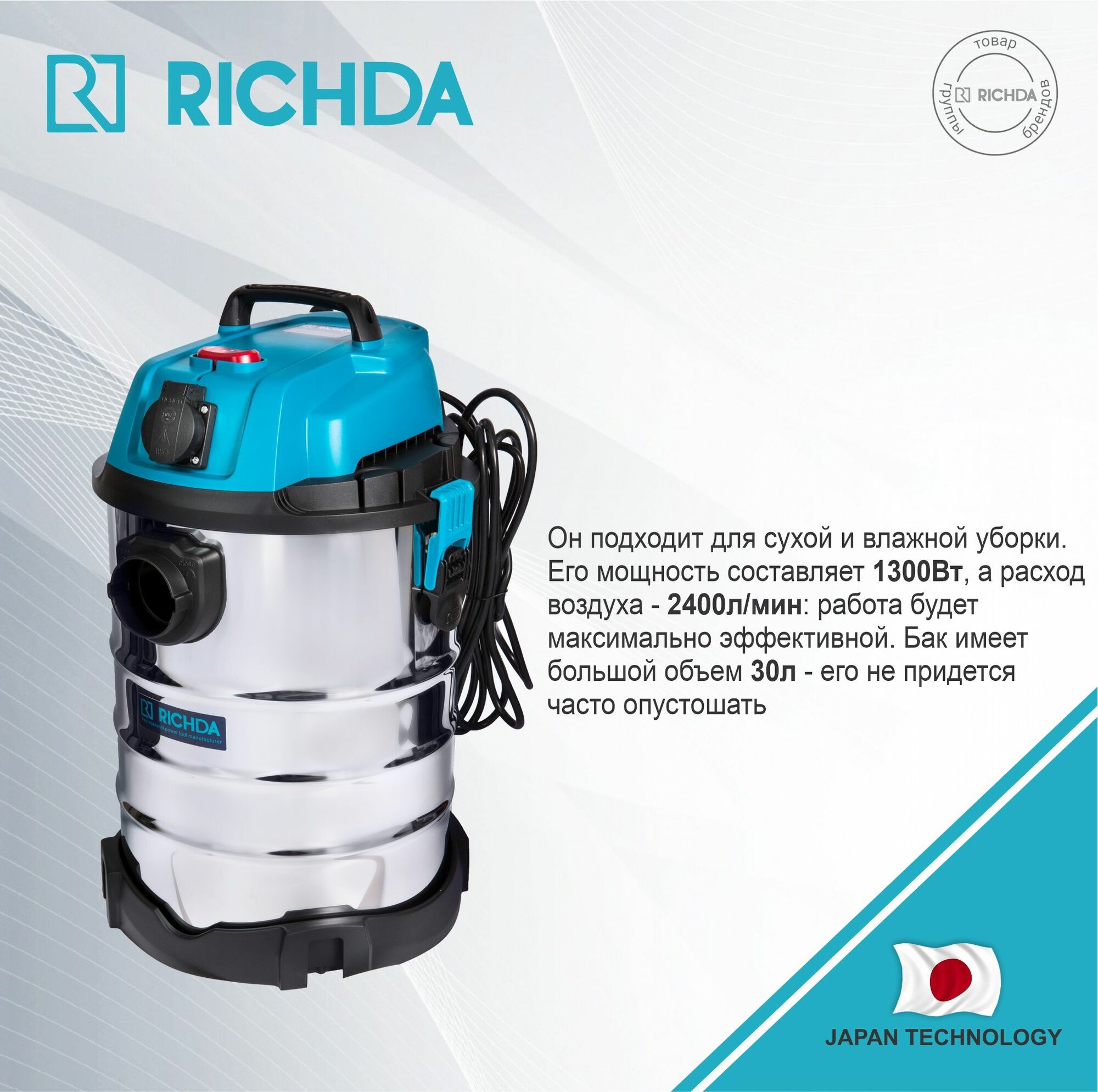 Строительный пылесос RICHDA RH30L 1300Вт 30л интересное:
