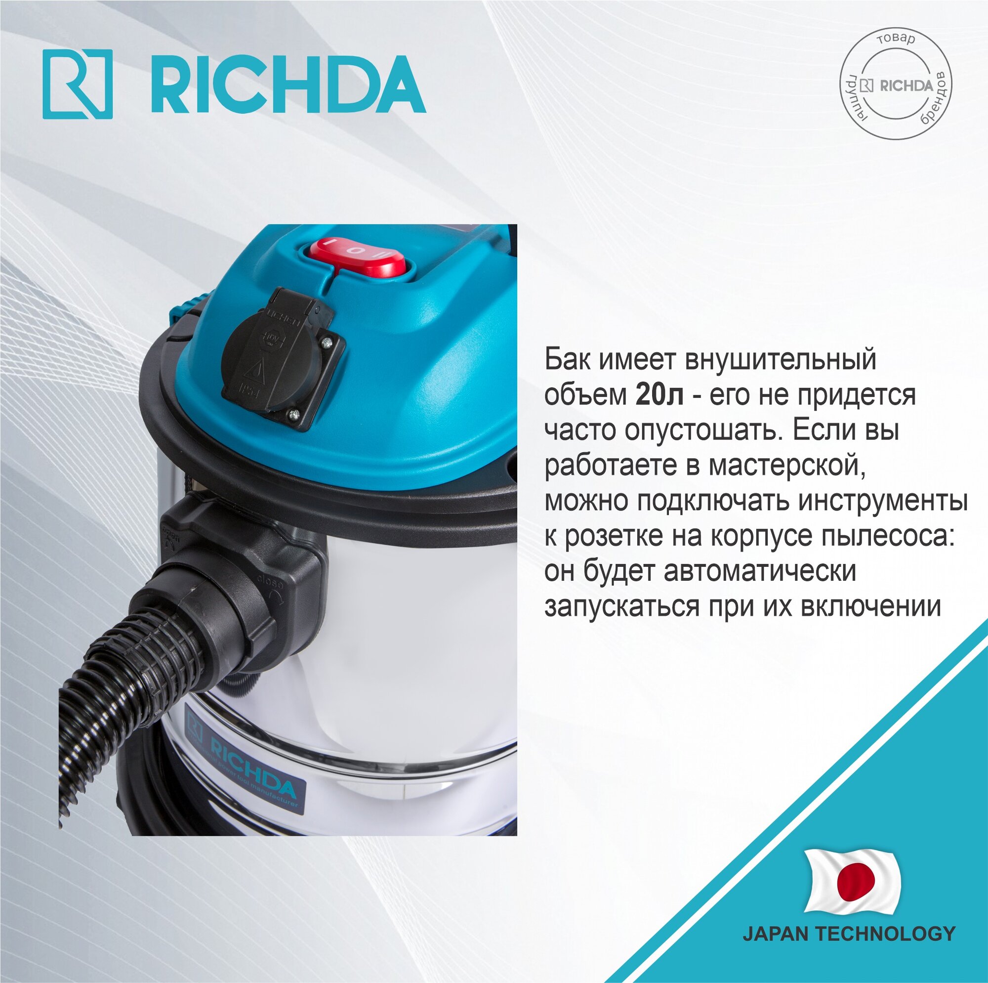 Строительный пылесос RICHDA RH20L 1300Вт 20л интересное: