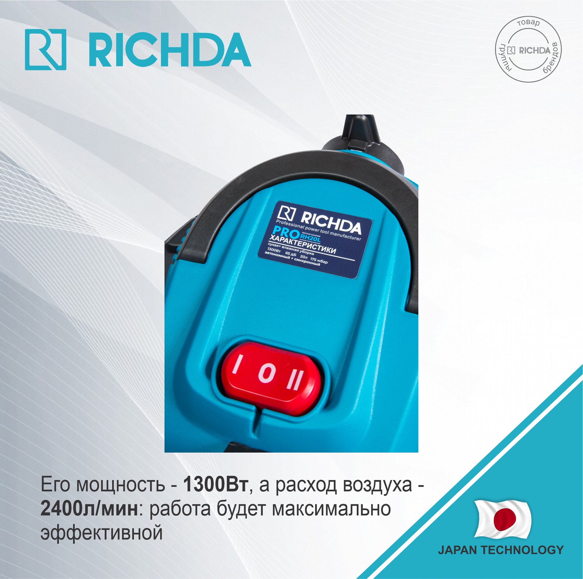 Строительный пылесос RICHDA RH70L 2400Вт 70л 2 турбины