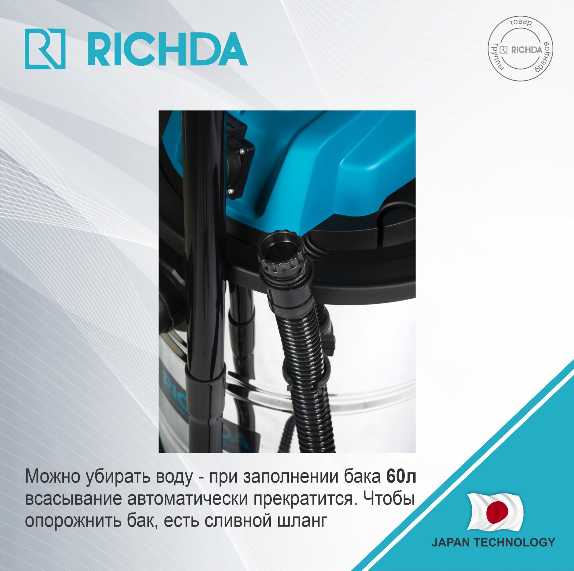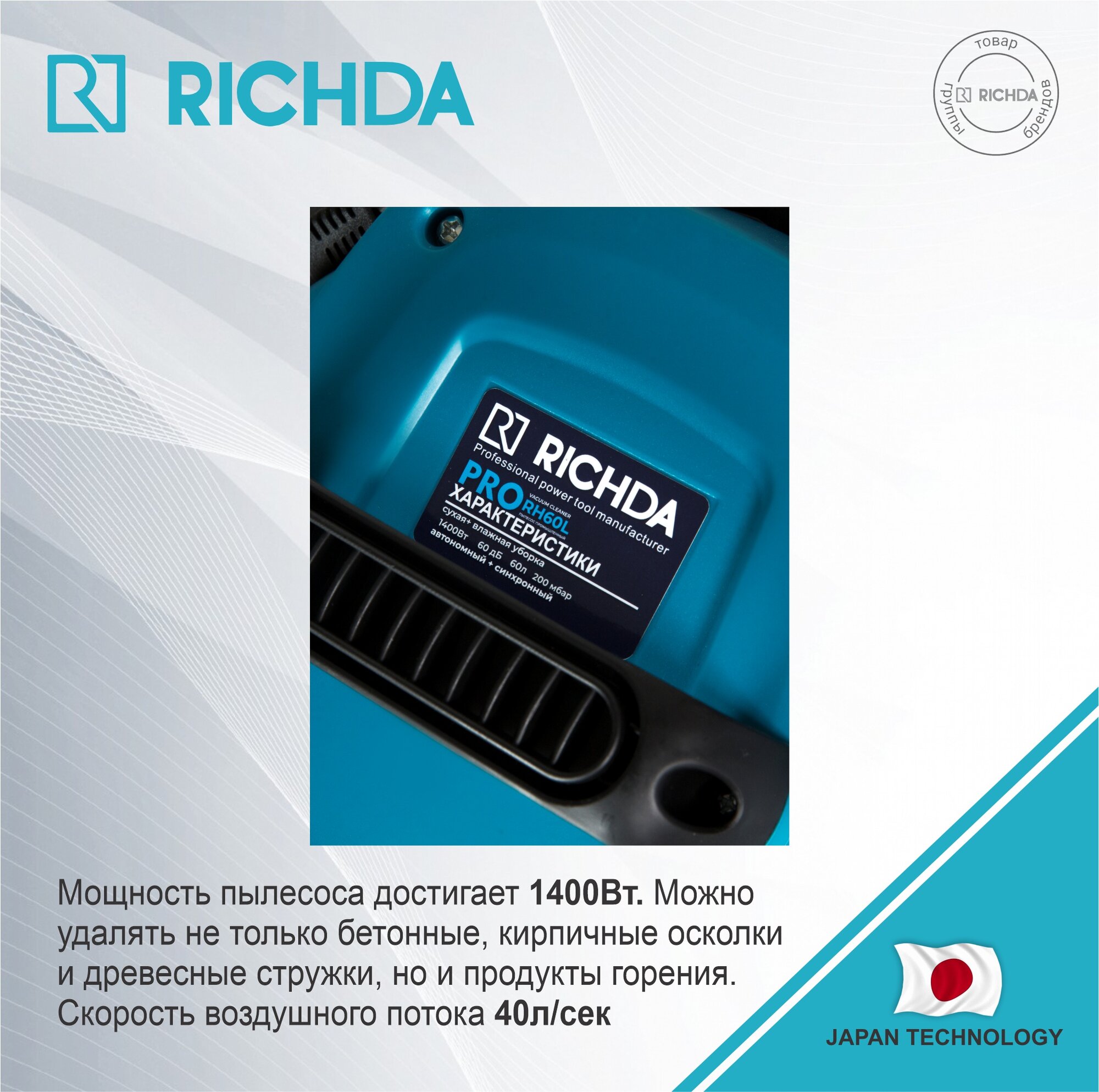 Строительный пылесос RICHDA RH60L 1400Вт 60л интересное: