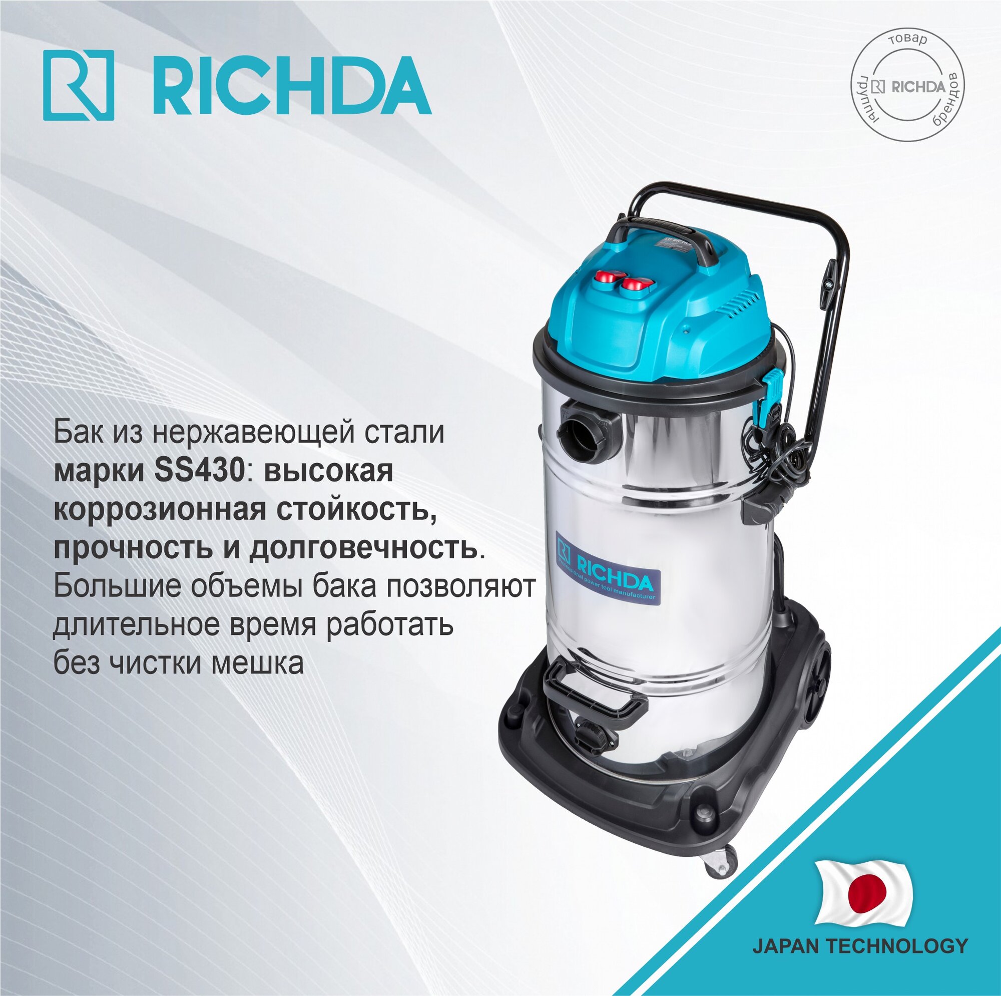 Строительный пылесос RICHDA RH70L 2400Вт 70л 2 турбины интересное: