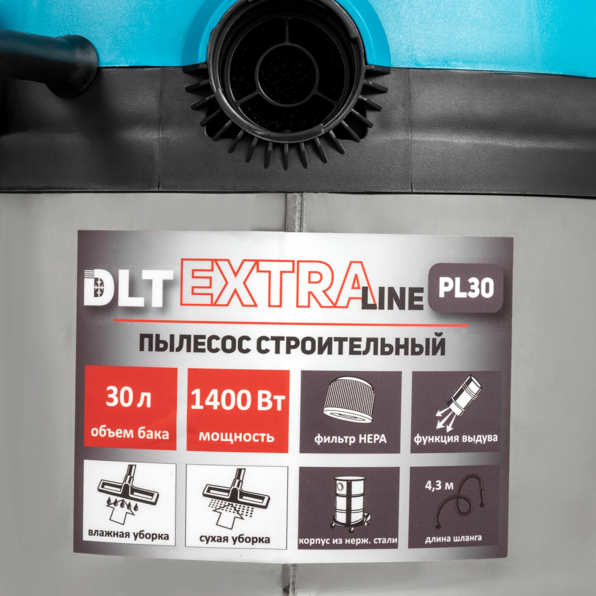 Купить Пылесос строительный DLT EXTRALINE PL30 с полуавтоматической очисткой фильтра (обратный поток)