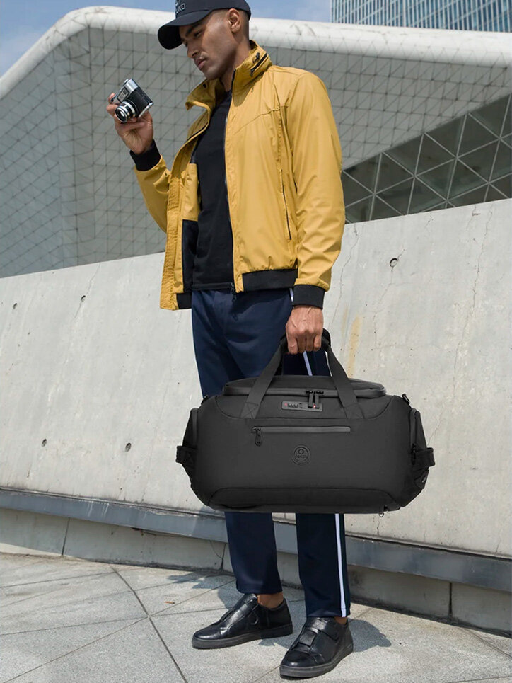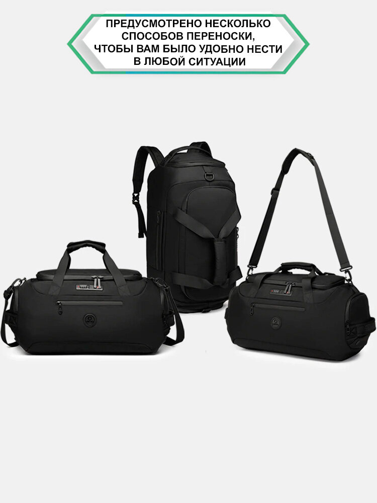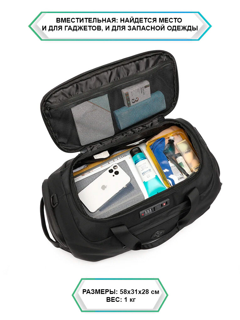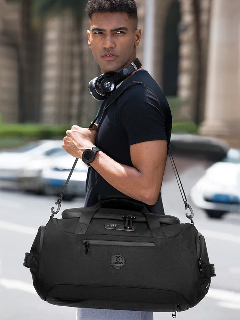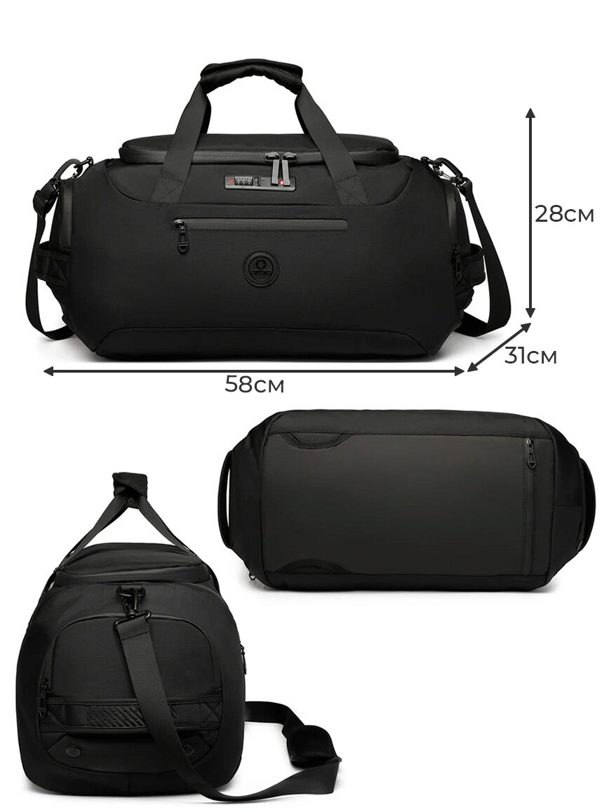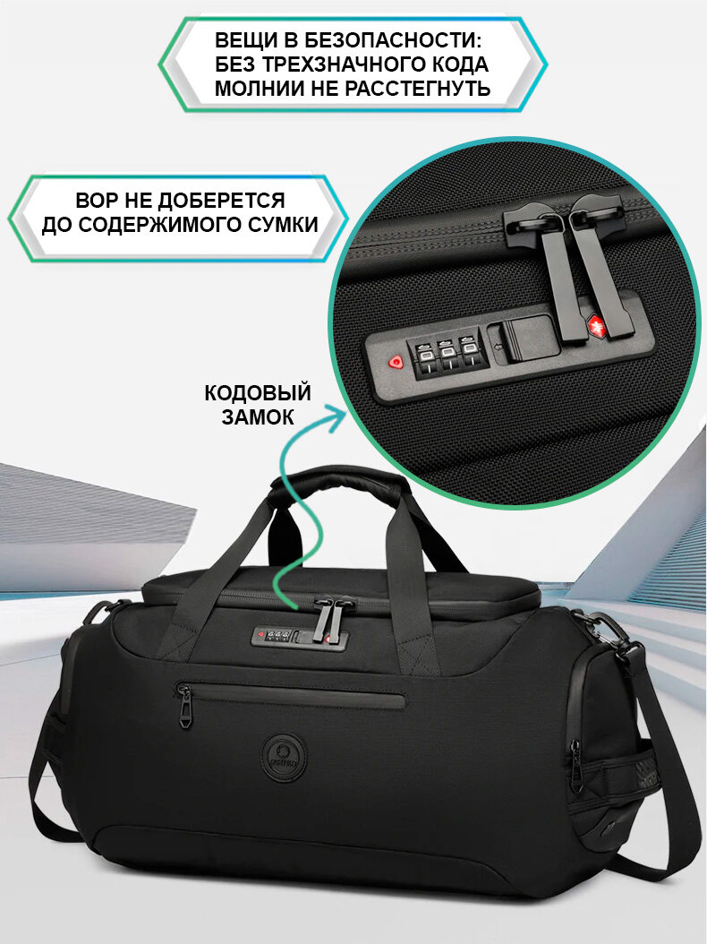 Сумка-рюкзак с кодовым замком дорожная мужская большая Ozuko для вещей, обуви, гаджетов, черная интересное:
