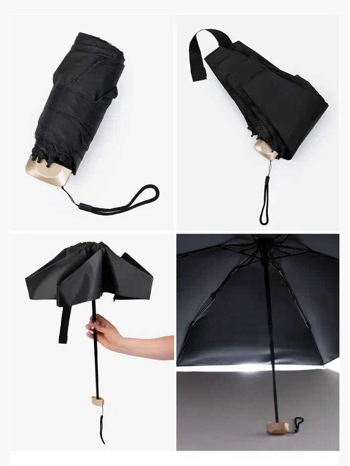 Черный мини зонт мини-зонт облегченный mini антиветер уф-защита от солнца угольный графит
