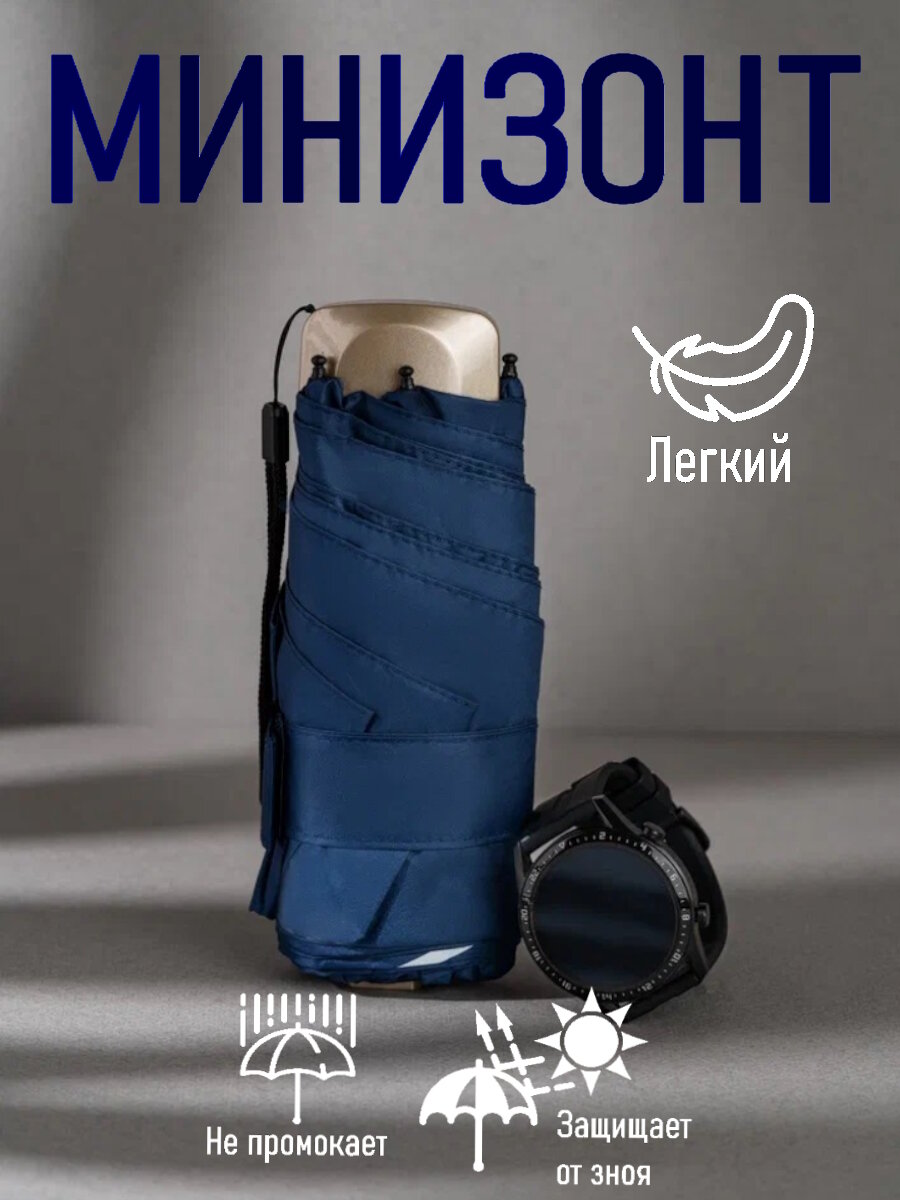 Синий зонт минизонт мини-зонт облегченный mini зонт антиветер уф-защита от солнца ультрамарин интересное: