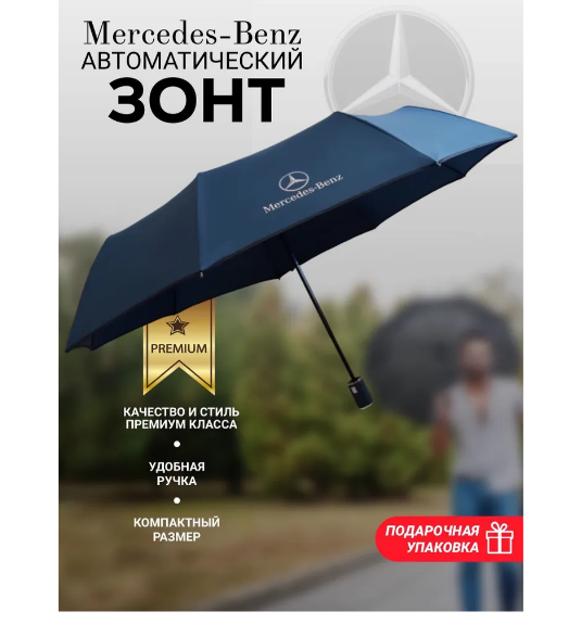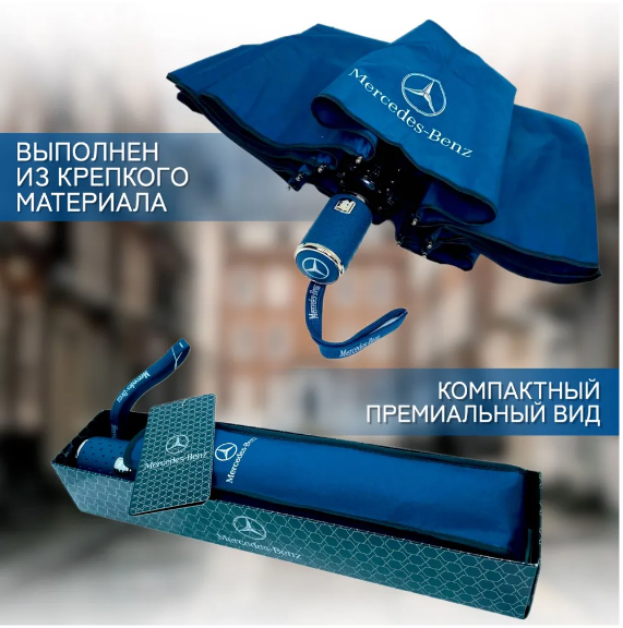 Зонт Мерседес в подарочной упаковке, автомат, антиветер, синий интересное: