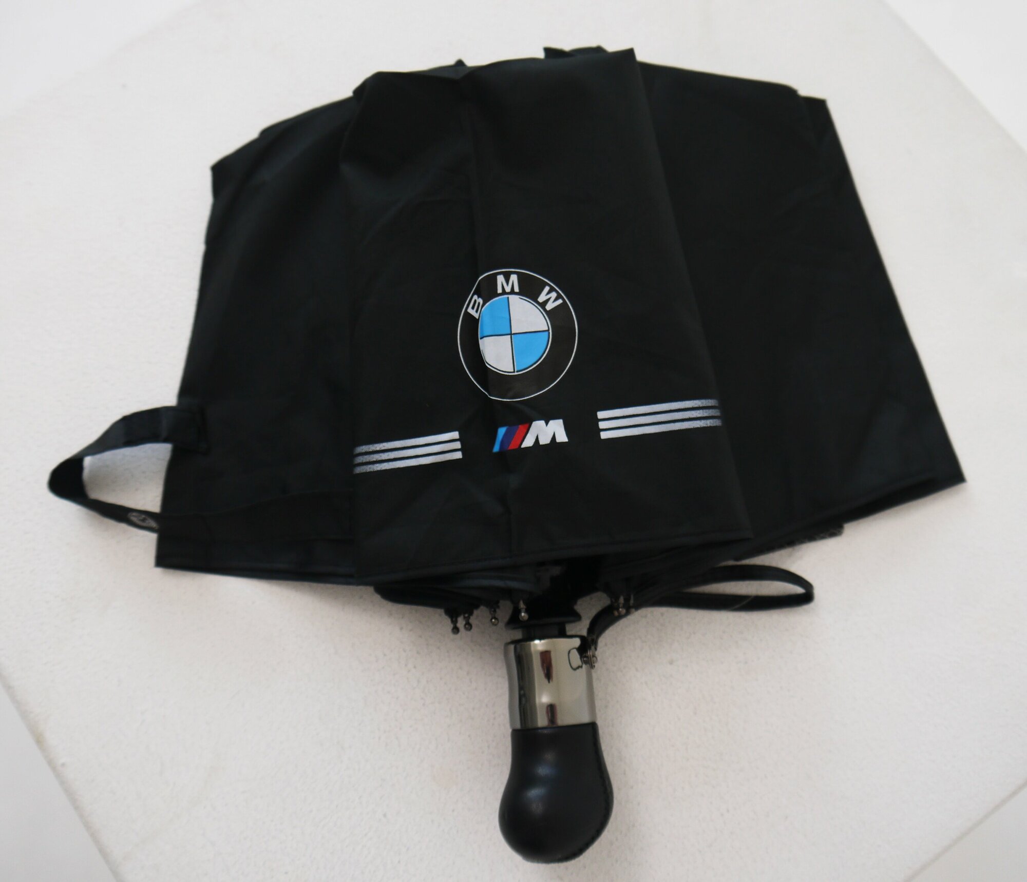 Купить Зонт БМВ c кожаной ручкой, премиальный, автомат, антиветер, черный