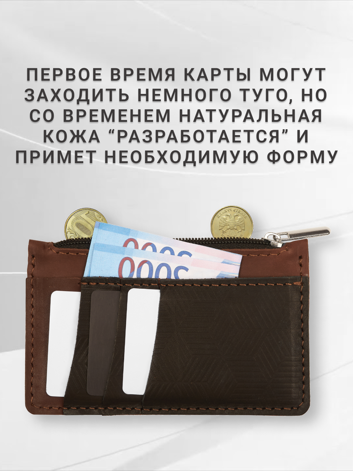 Кожаный картхолдер визитница для карт и монет с молнией, коричневый с черным интересное: