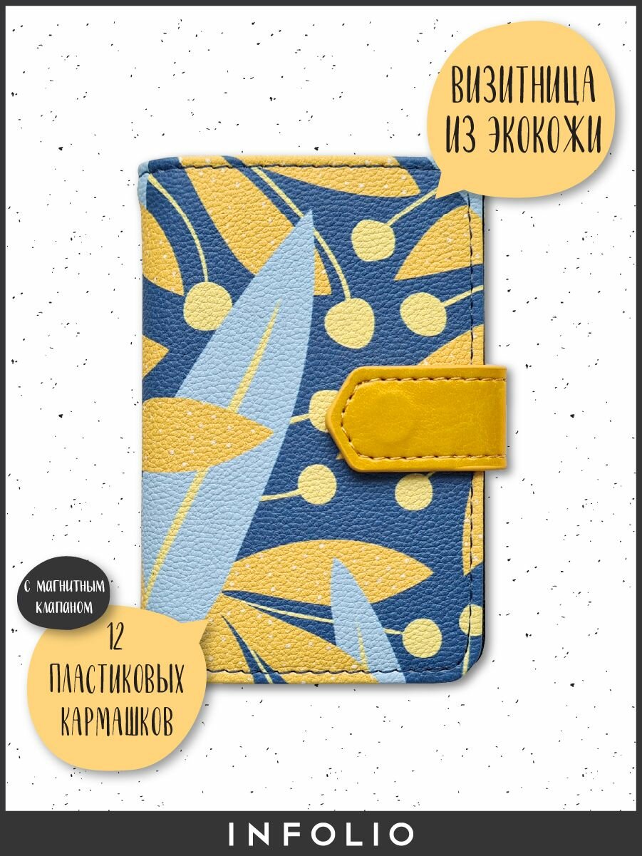 Визитница/кардхолдер/кредитница Infolio "Naive", 8х10 см на магнитном клапане в подарок для девушки или женщины, 12 кармашков