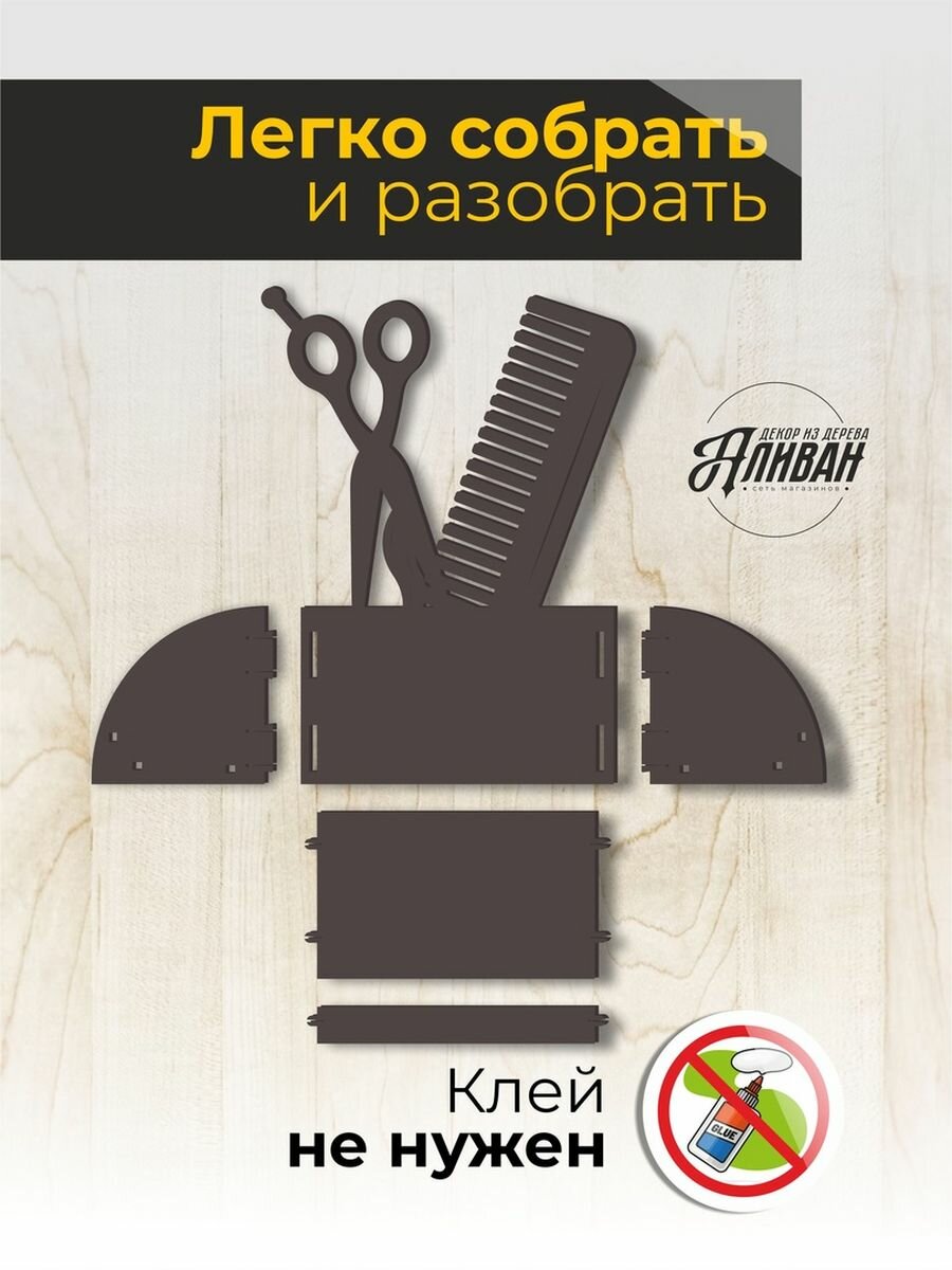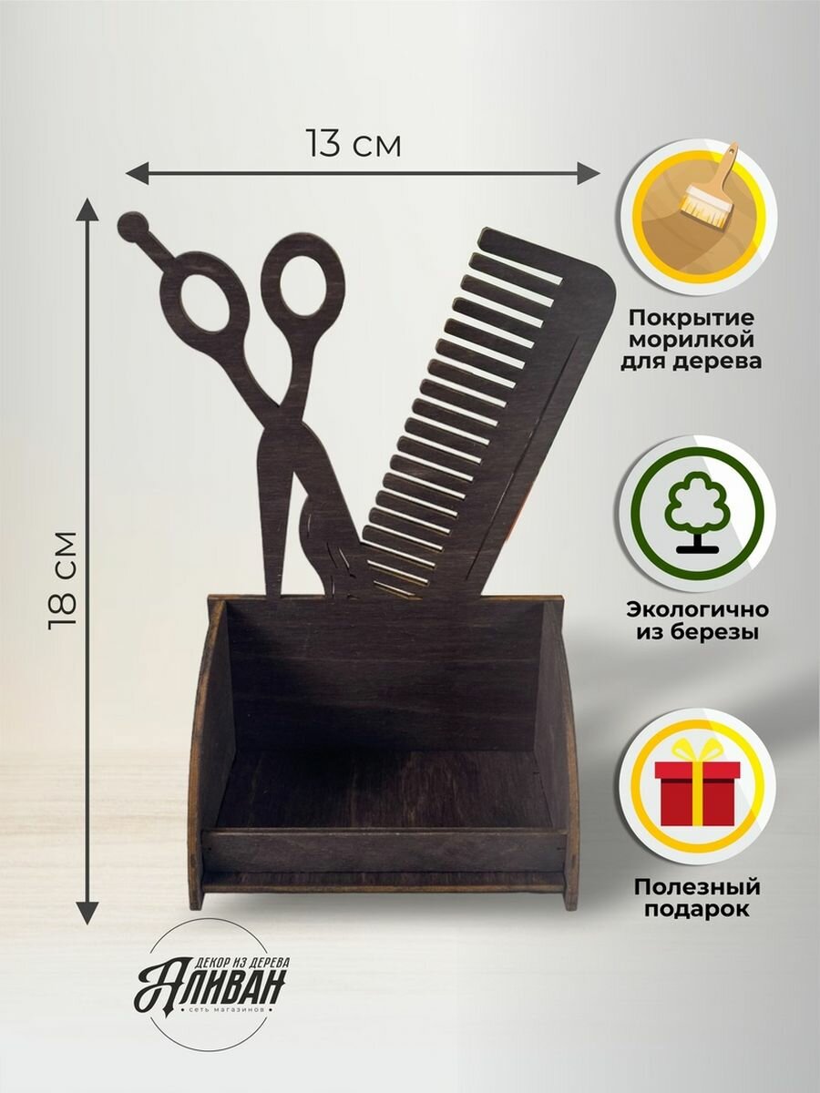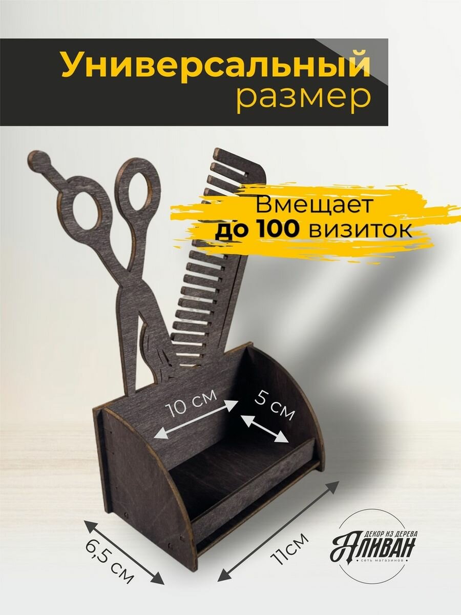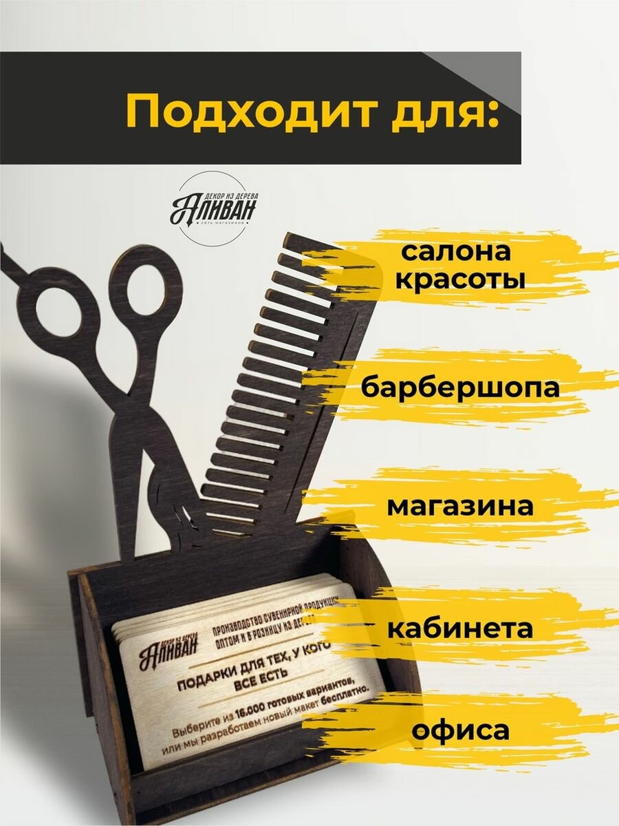 Подставка под визитки дерево парикмахер ножницы расчёска натуральный