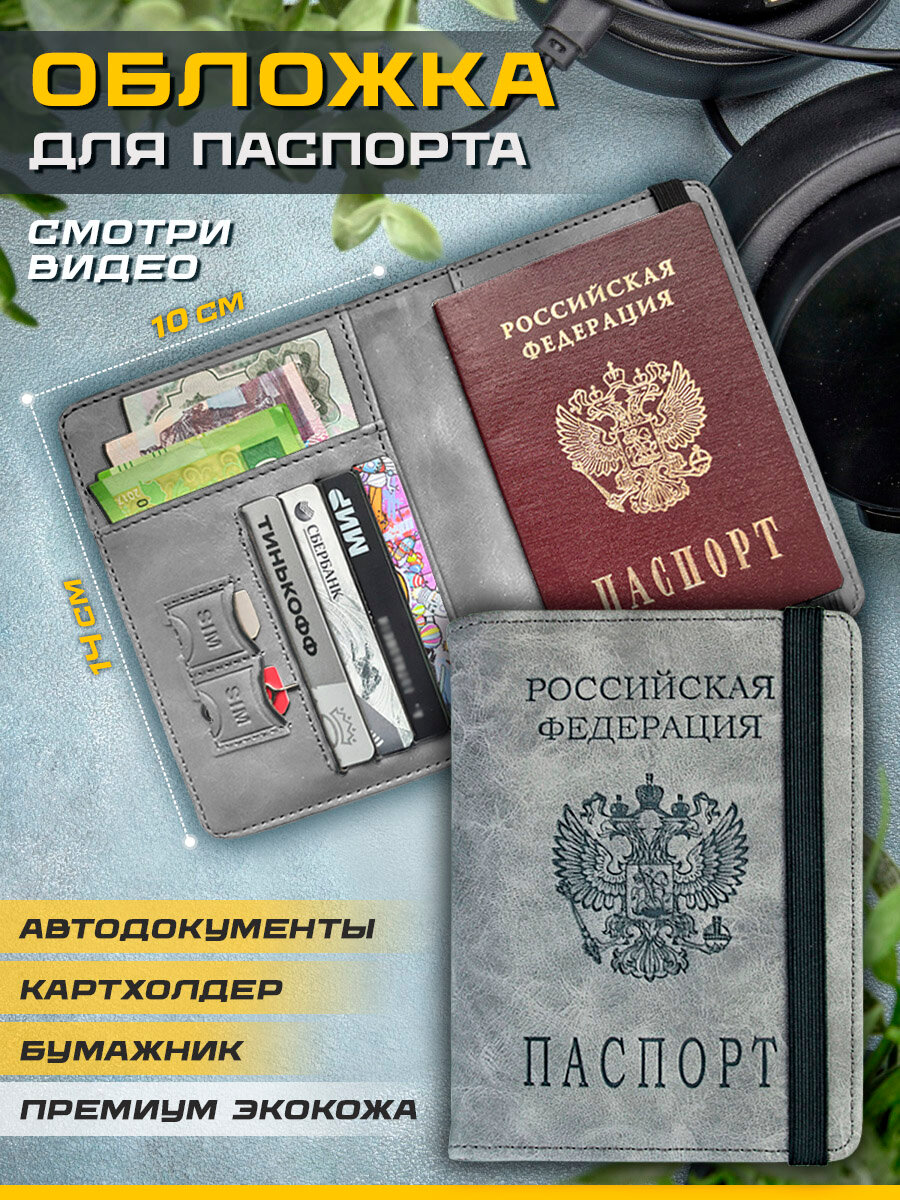 Обложка на паспорт и для автодокументов мягкая кожа эко, серая интересное: