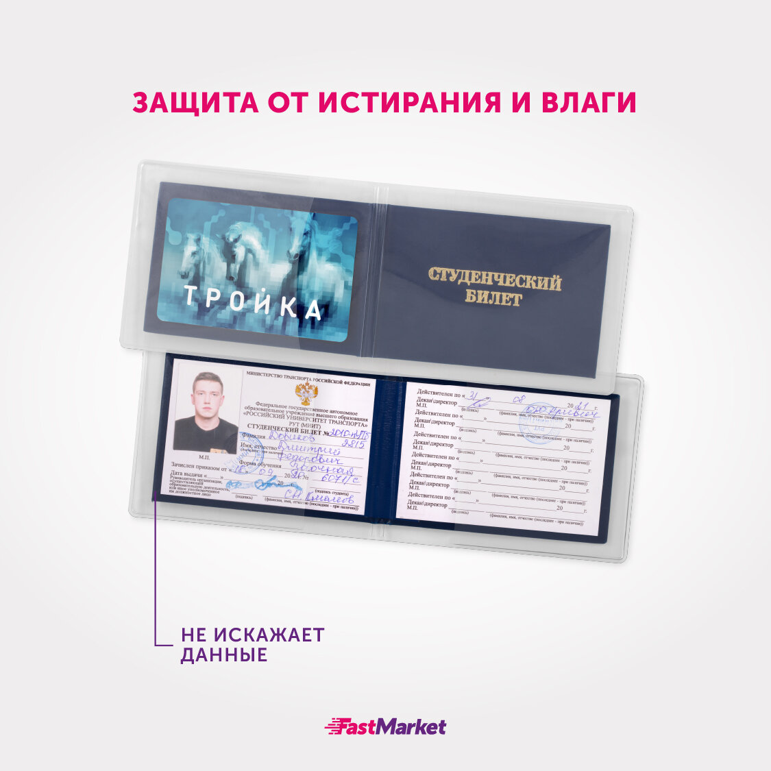 Купить Обложка для студенческого билета FastMarket, удостоверения, прозрачный чехол - корочка под пропуск, проездной