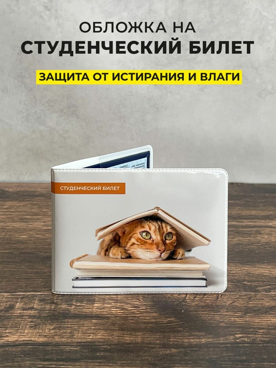 Купить Обложка для студенческого билета Котик с книгами