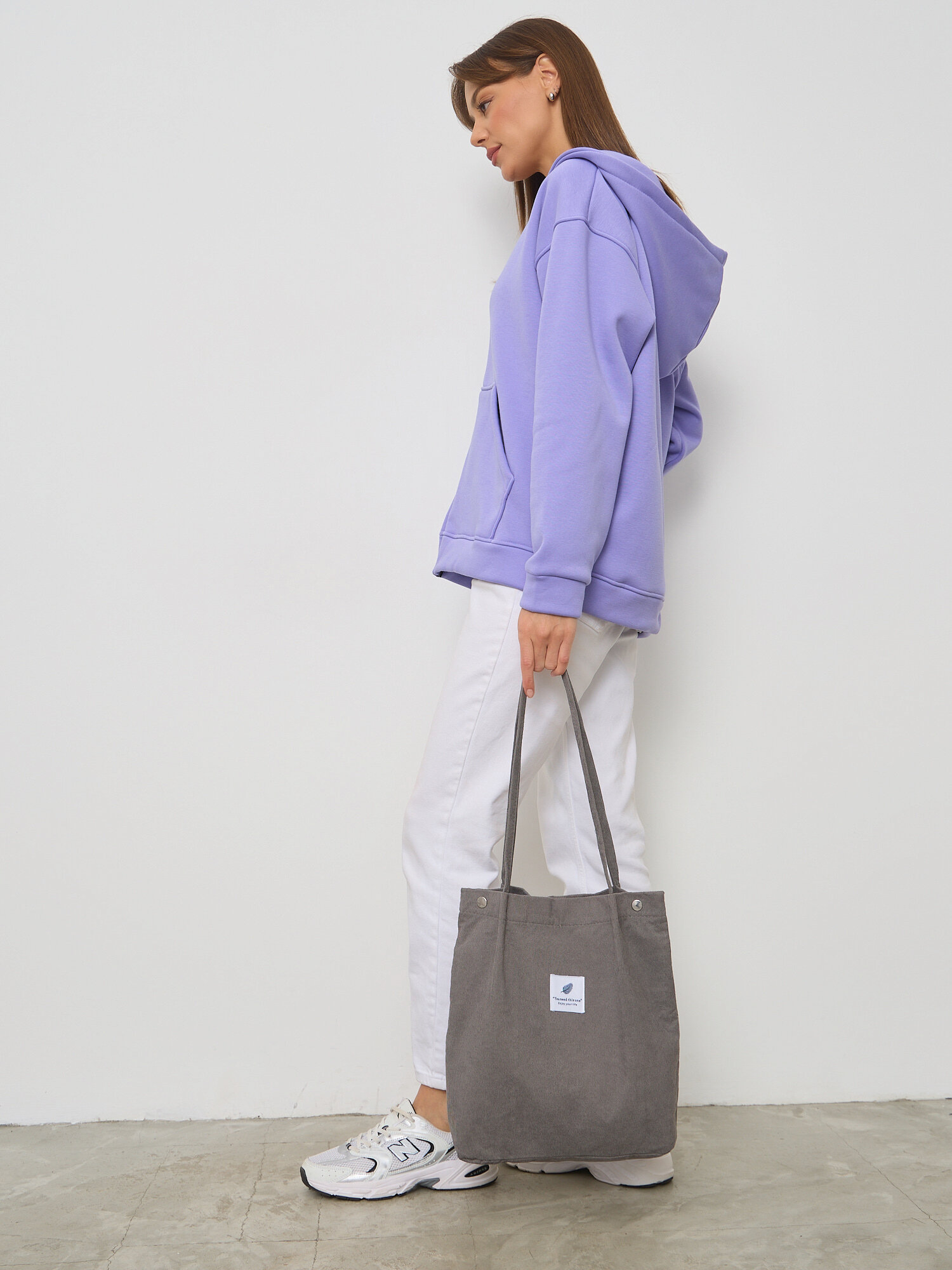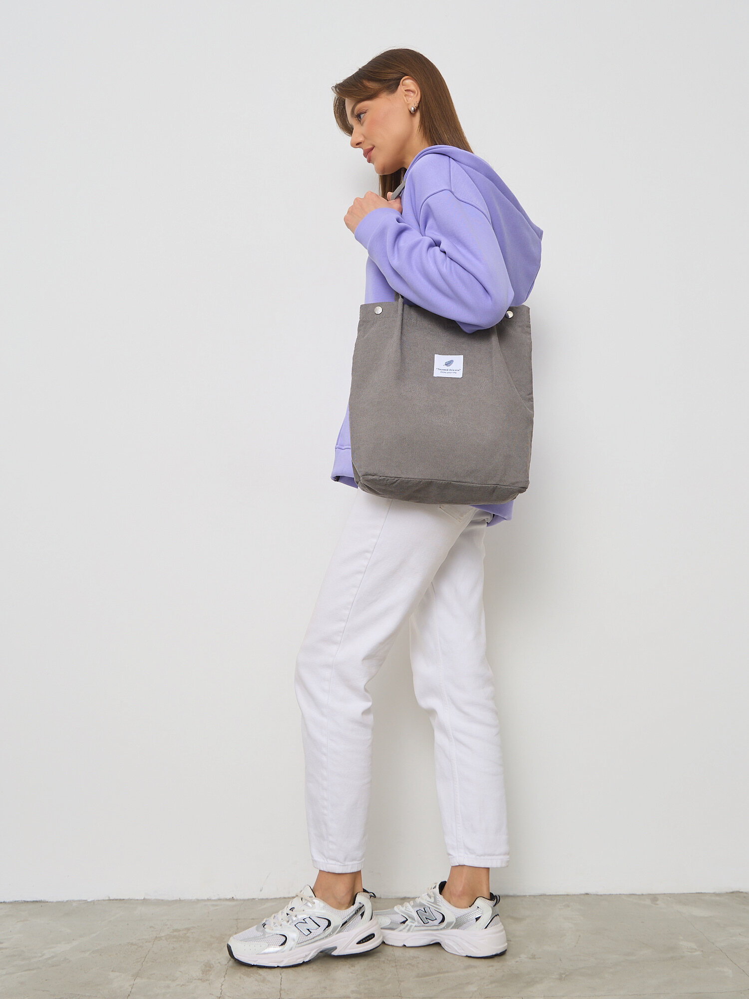 Сумка шоппер женская, UTA, Мэлон, вельвет, серая