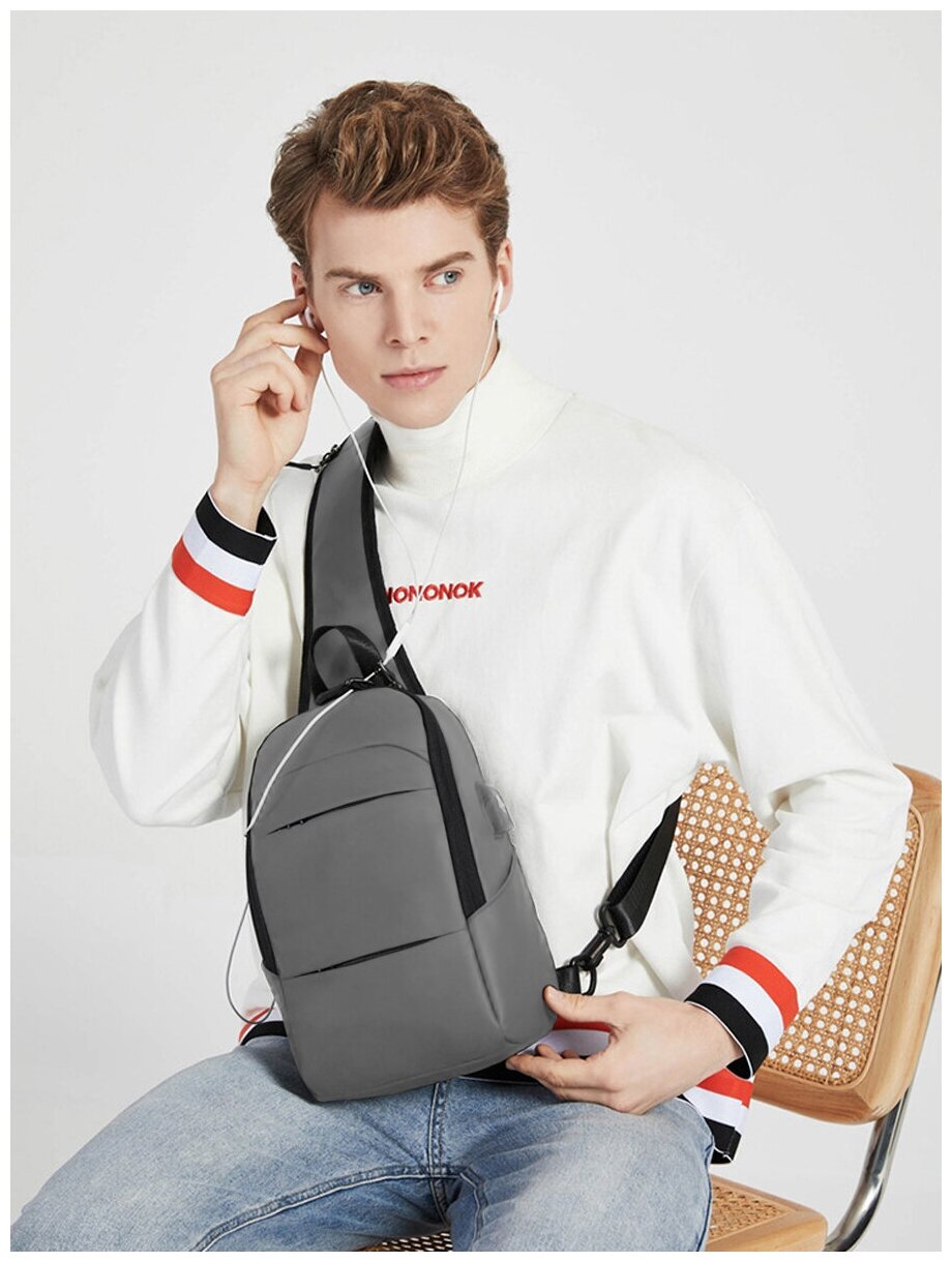 Мужская сумка на плечо Snoburg серая интересное:
