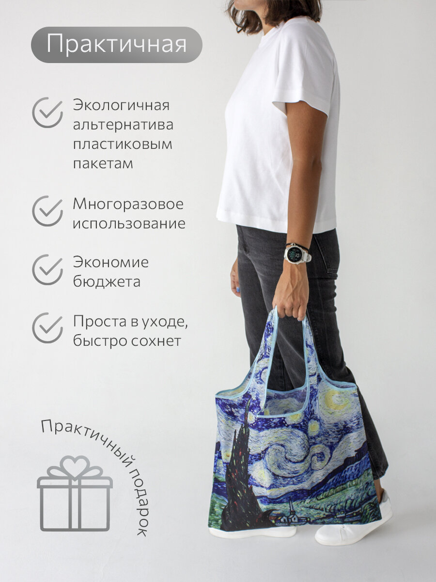 Ниже Вы можете прочитать отзывы на Сумка хозяйственная складная, авоська для продуктов принт Ван Гог Звездная ночь, ознакомится с подробными характеристиками, посмотреть интересные обзоры и фотографии на Сумка хозяйственная складная, авоська для продуктов принт Ван Гог Звездная ночь.
