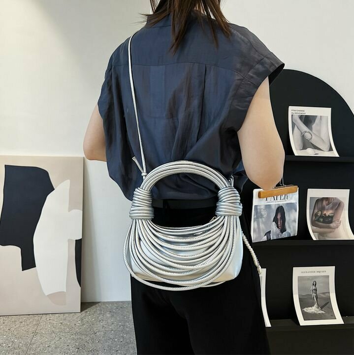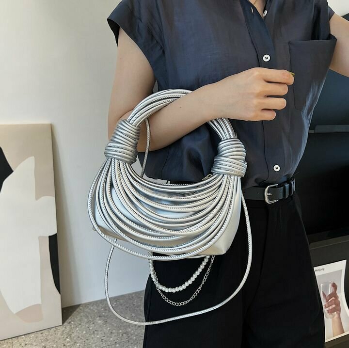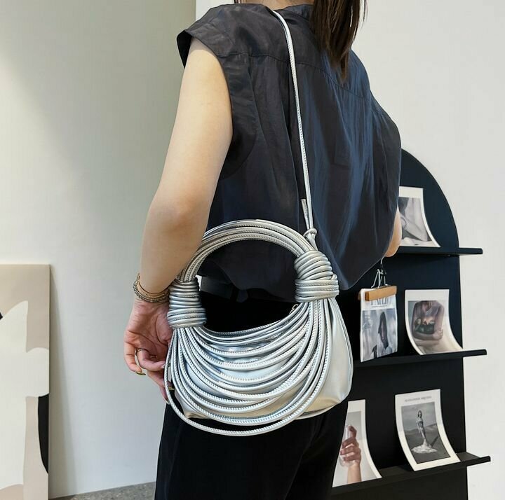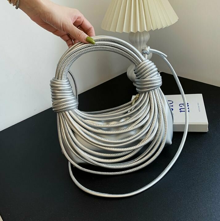 Сумка женская BOTTONCINI плетеная, креативная с узлом, серебро, р-р 21х10х5 см интересное:
