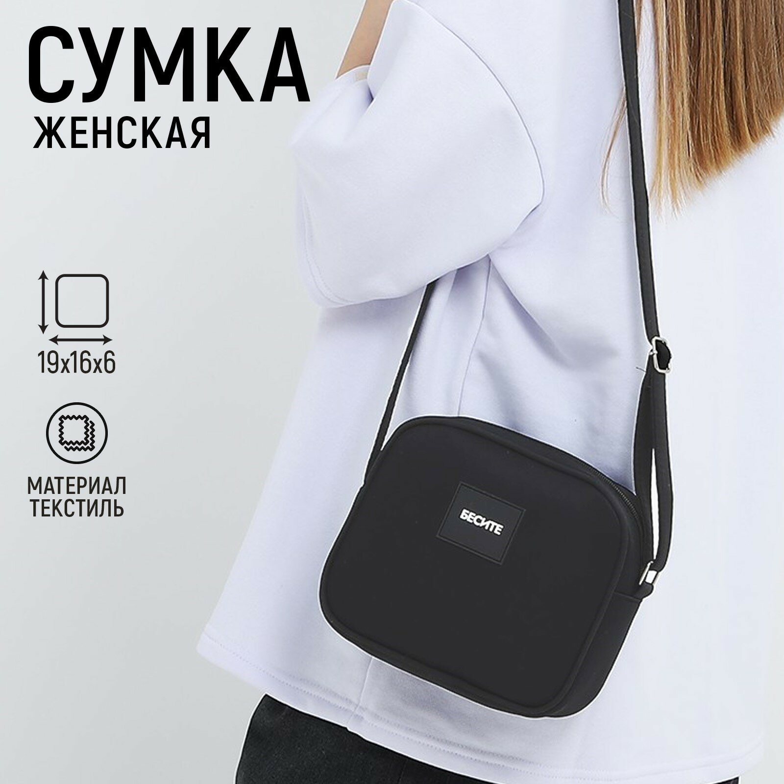 Сумка женская из текстиля с нашивкой, "Бесите", 19*16*6 см 9353071 интересное: